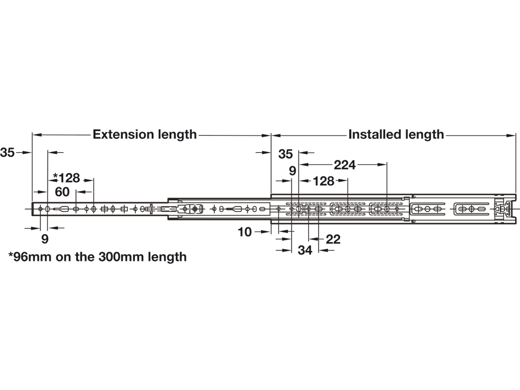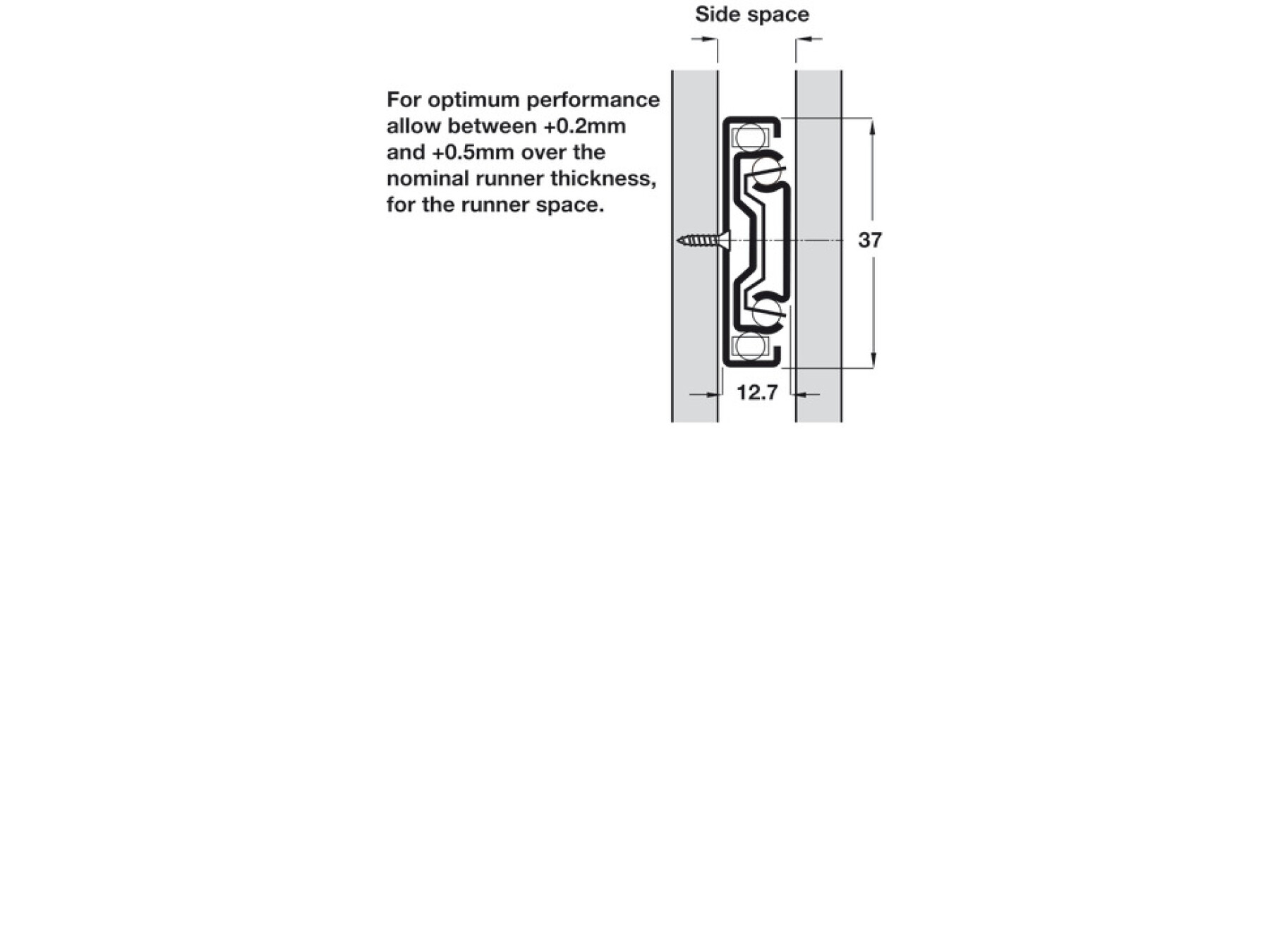 12.7 mm slide thickness (14 mm with mounting bracket)