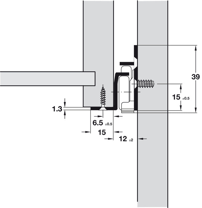 • Installation: Screw fixing to drawer and screw fixing using slots in carcase profile, 32 mm series drilled holes, base mounted