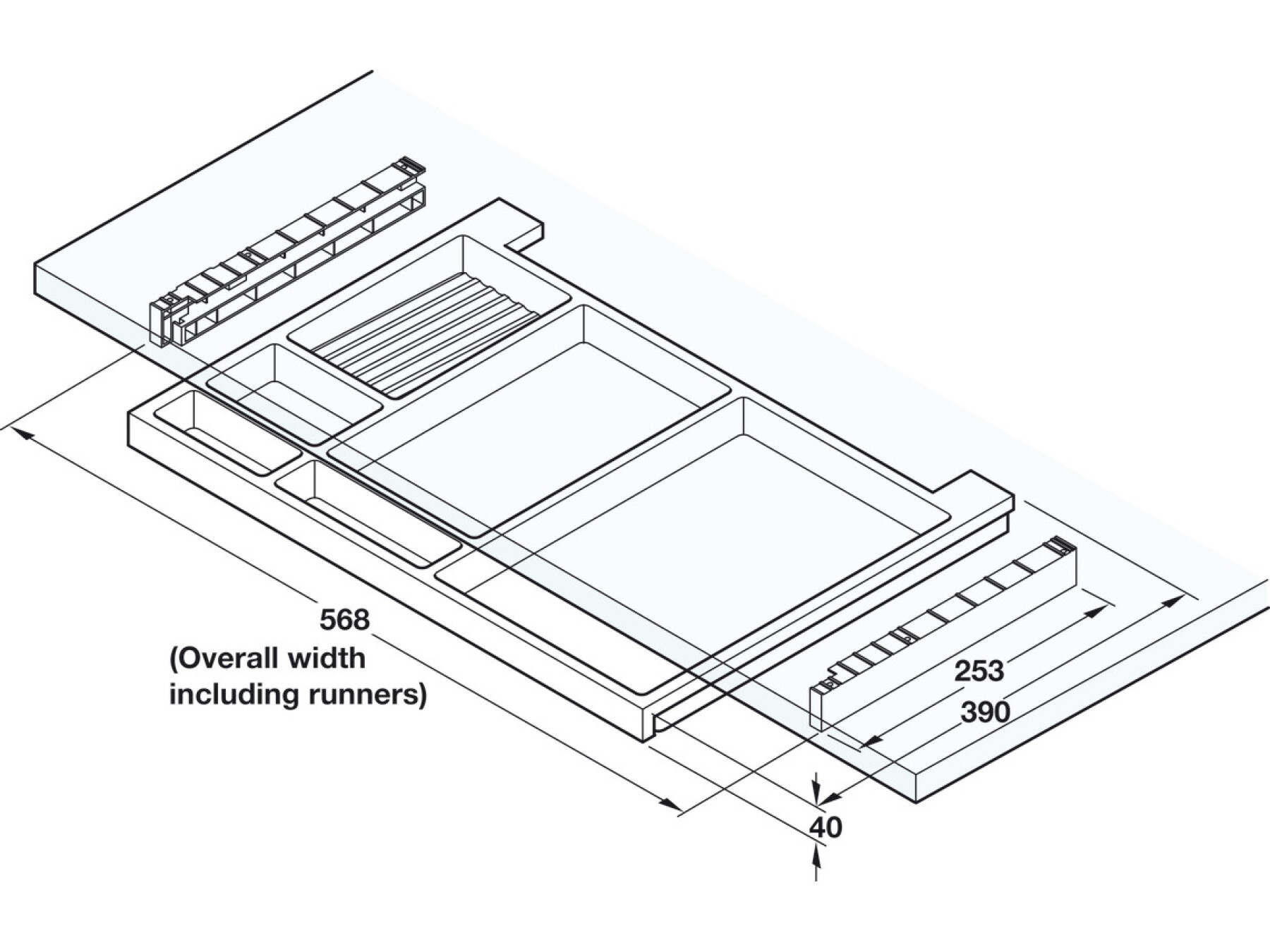 Runner extension 320 mm, giving good access to all compartments