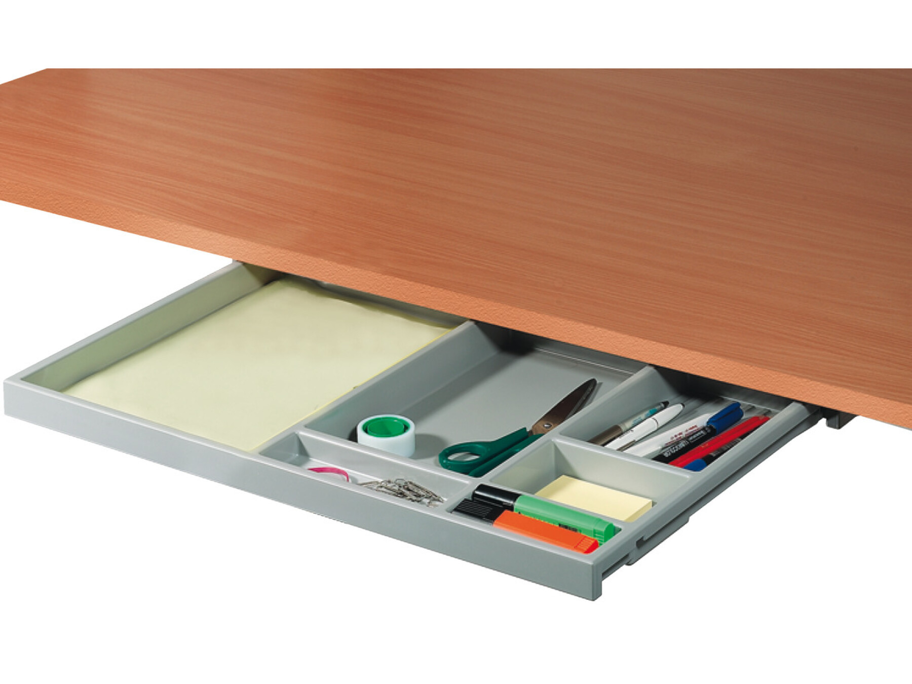 For screw mounting beneath desk topCompartments allow for pens, pencils and documents up to A4Runner extension... Read More