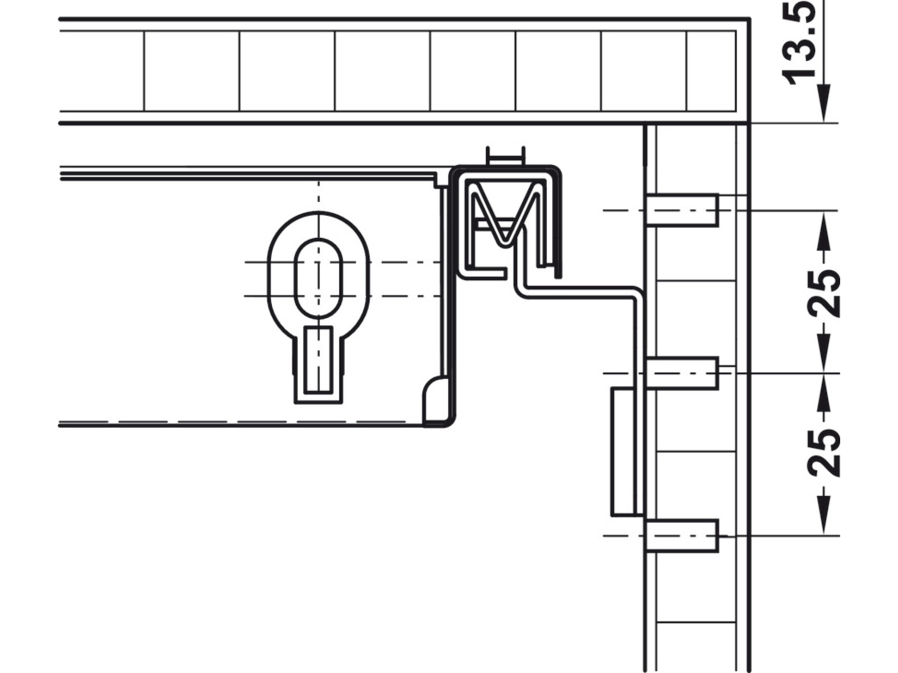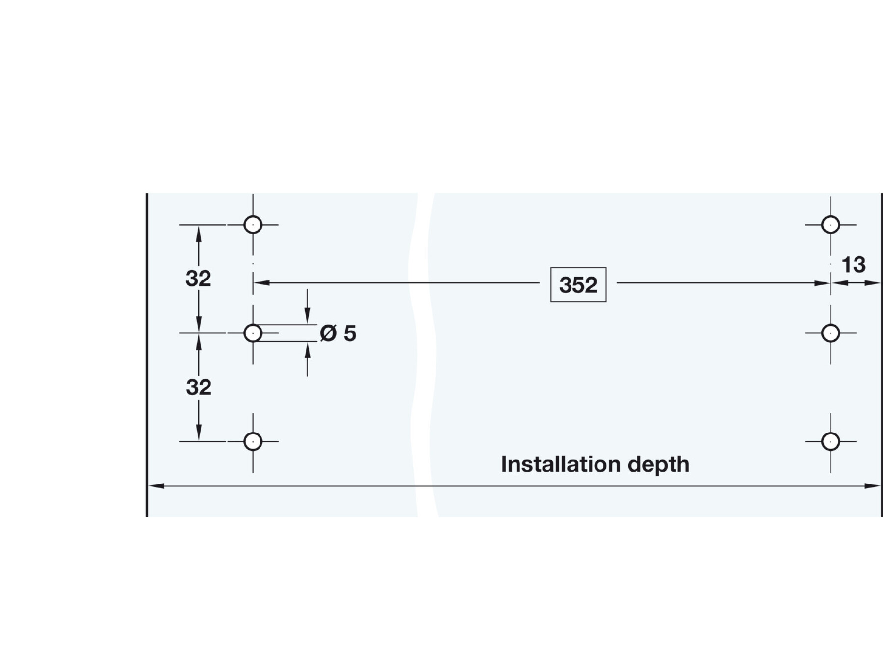 Series drilled holes 13 mm or 37 mm from front edge possible.