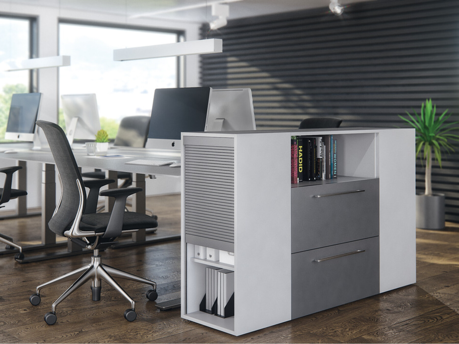 The door shutter folds away neatly and is concealed when open