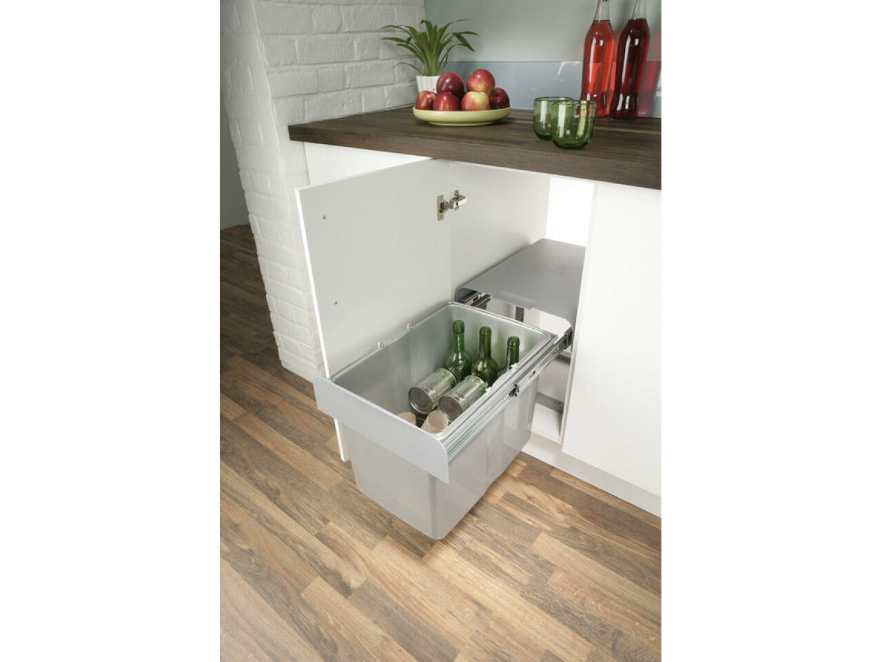 The bin housing incorporates its own runners and is secured to the cabinet floor