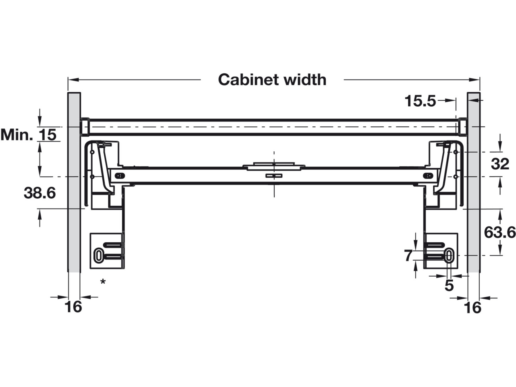For Grass DWD runners or Blum Tandembox, crossbar: none