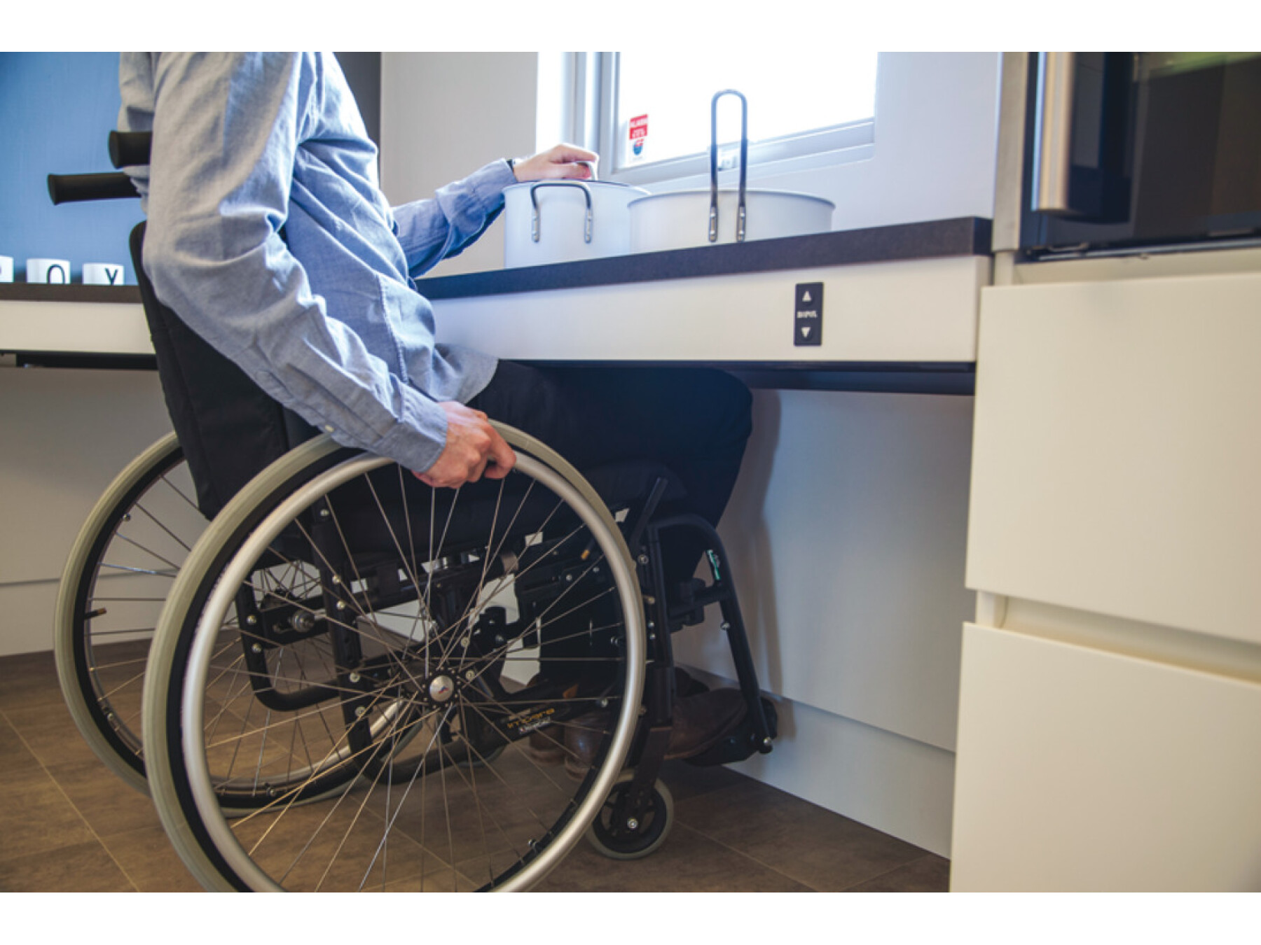 Safety strips ensure that worktops don’t just stop, but reverse their movement immediately when activated