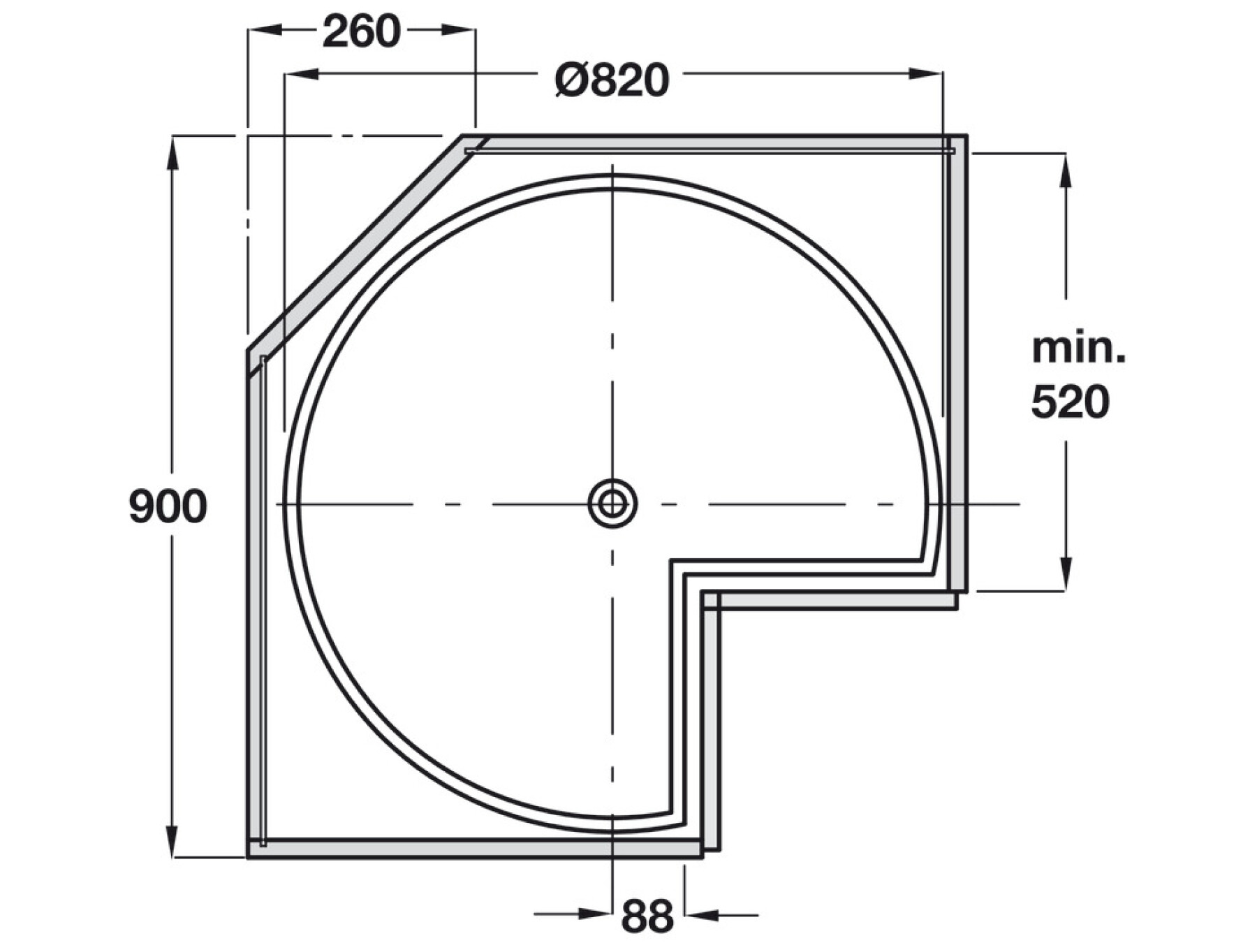 Three quarter circle, for corner unit with hinged doors
