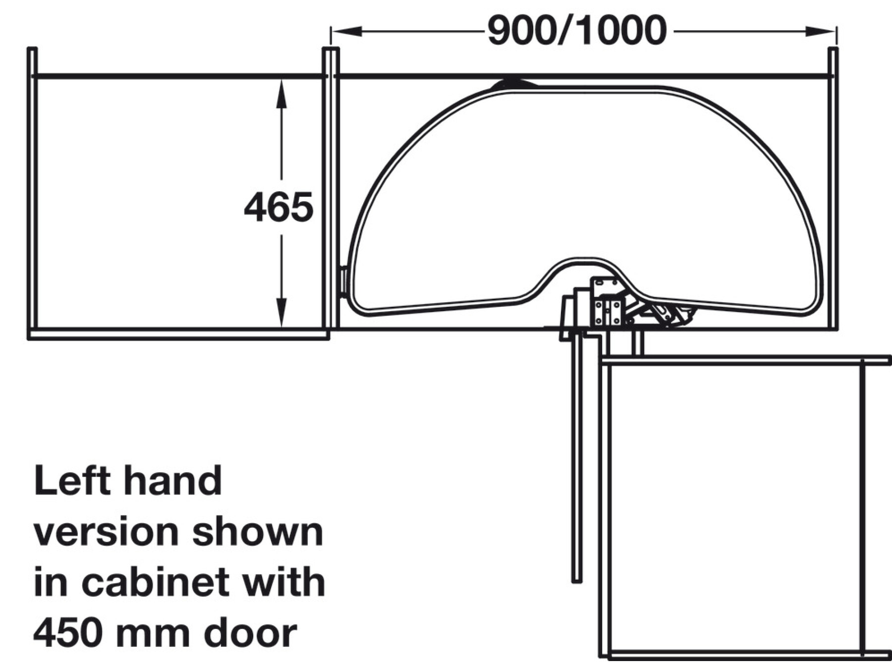 Suitable for 900 mm cabinet with 450 mm door or 1000 mm cabinet with 500 mm door
