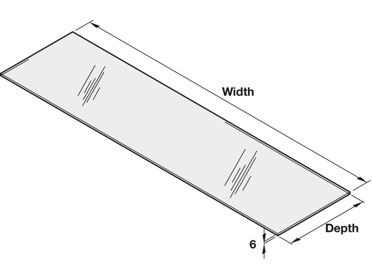 Clear glass, 6 mm thick with polished edges