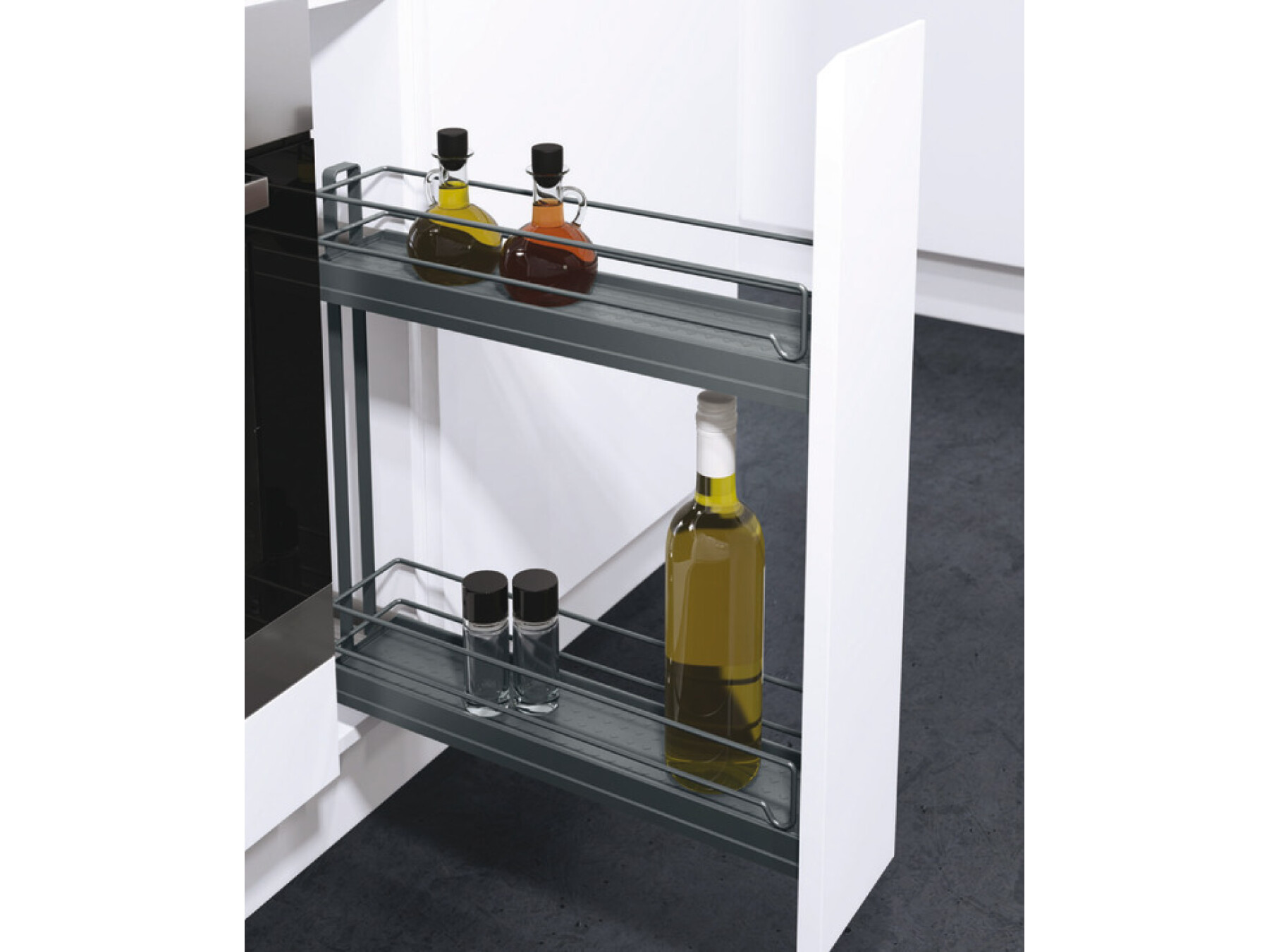 Make the most of the space available in the kitchen -The VS SUB Slim by Vauth-Sagel has two baskets which transforms a small area into a storage space suitable for smaller items in the kitchen you can hide away within a 150 mm cabinet.