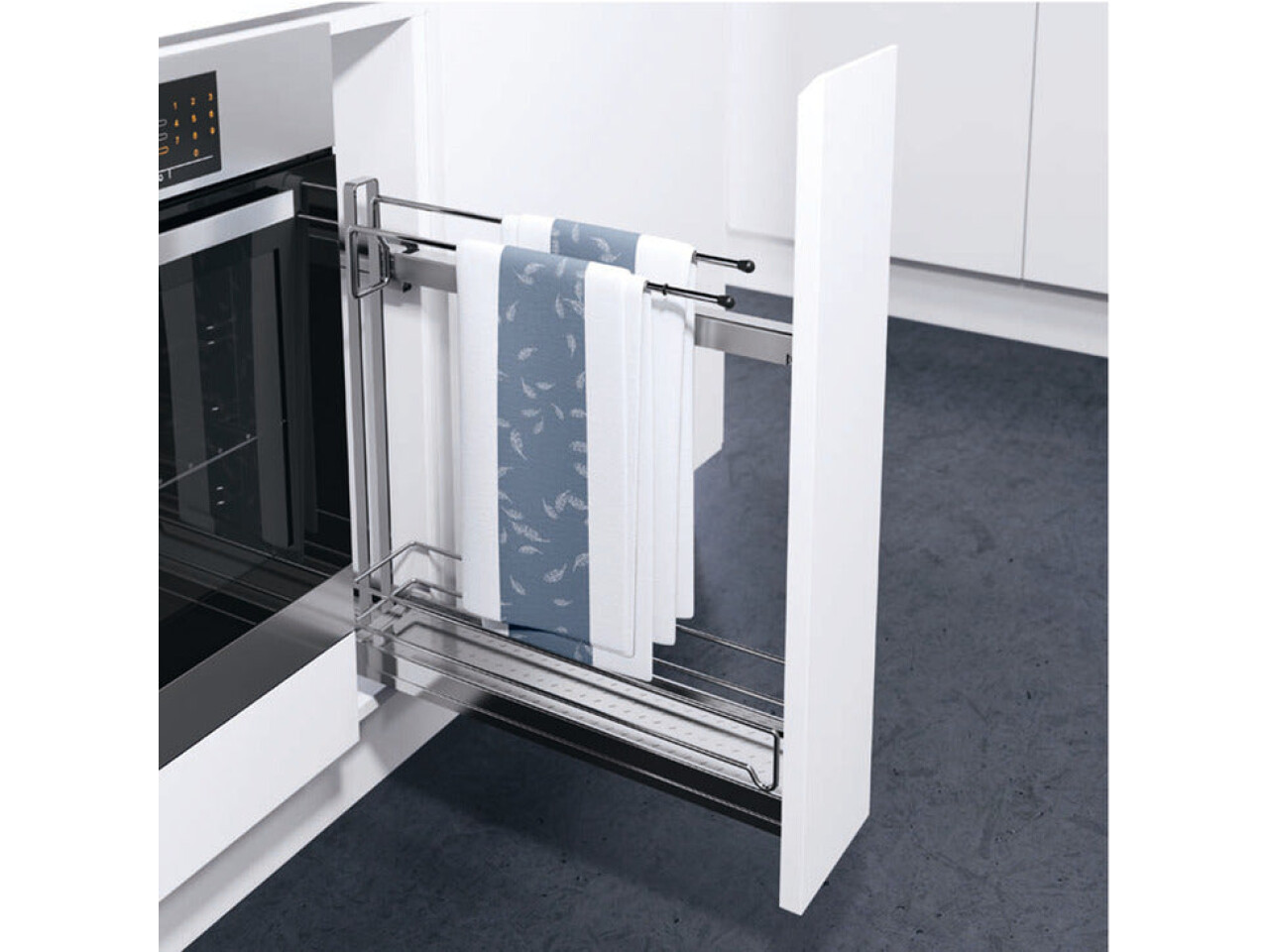 A unit to make those smaller spaces more accessible. The VS SUB Slim by Vauth-Sagel comes with a storage basket at the bottom and a two pronged towel rail at the top. The unit has soft closing operation and an elegant design which is bound to be a valuable addition to the kitchen.