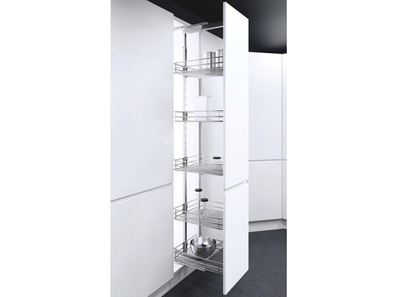 The improved runners also ensure a fully synchronised slip-free, safe and smooth extension and retraction of the larder unit.