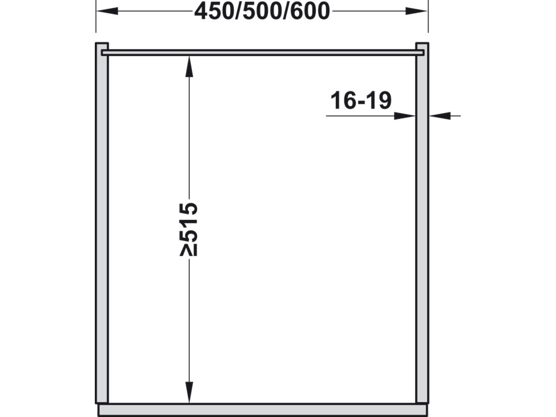 Installation is designed for side mounting and suits cabinets using board thicknesses of 15/16 or 18/19 mm. The depth measures 491 mm, while the internal cabinet depth required is 515 mm, ensuring compatibility before you fit.