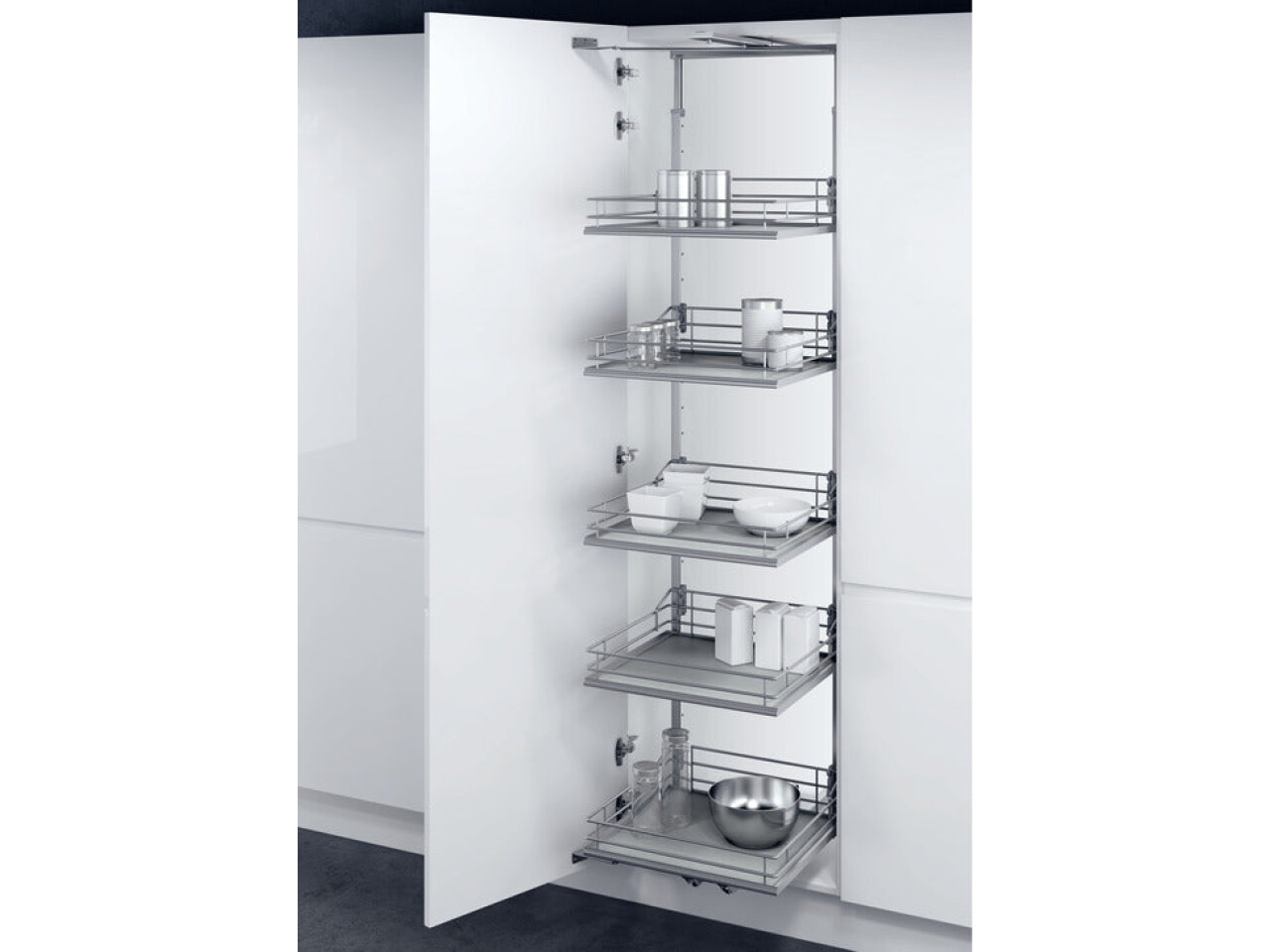 Product subtitle: Centre mounting, height adjustable, for cabinet width 500 mm and basket width 400 mm, installed height 1700-1950 mm. With 5 baskets included, you’ll enjoy flexible, tiered storage that keeps food, cookware, and kitchen essentials easy to access and simple to rearrange.