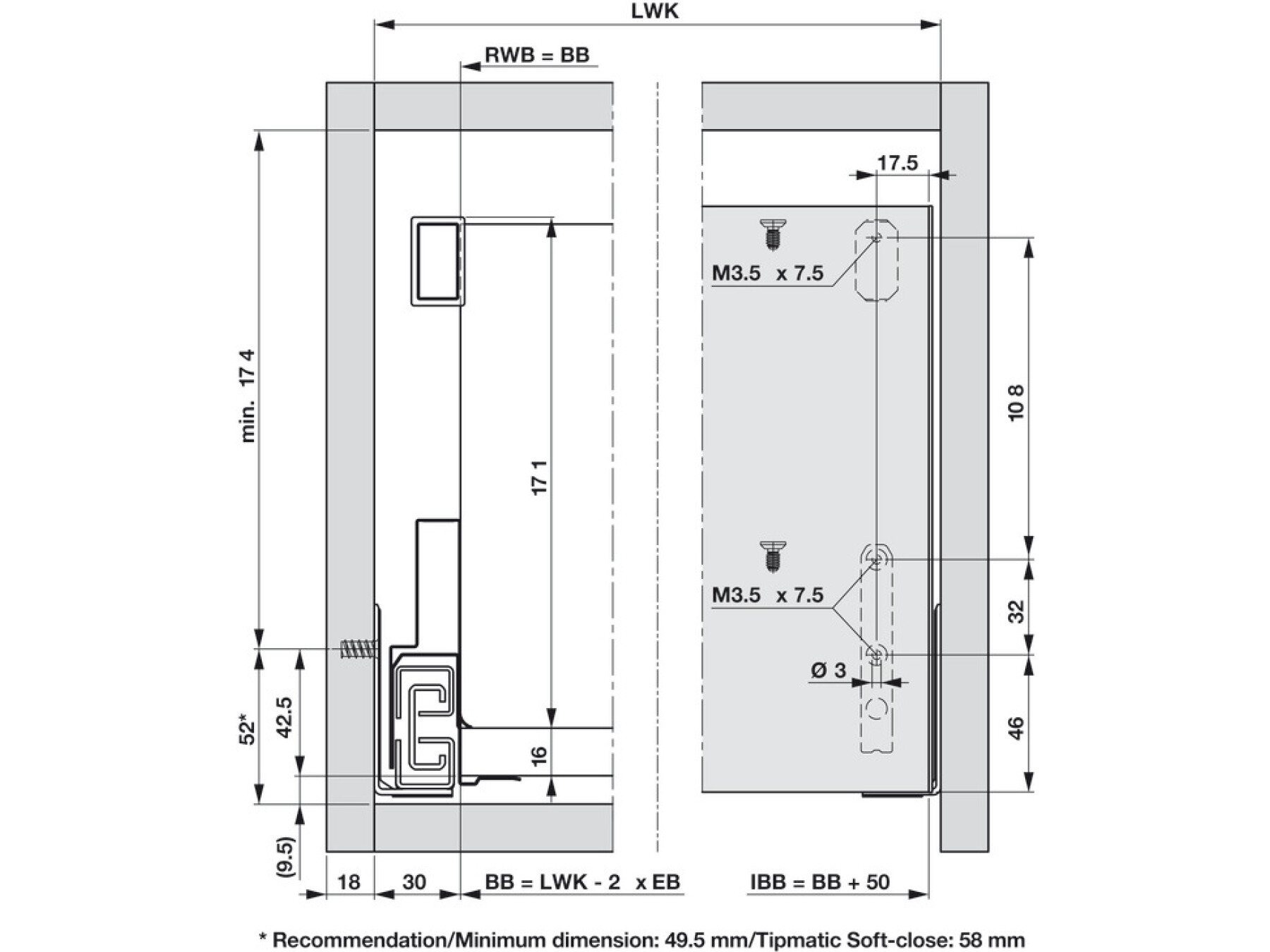 To create Nova Pro Scala internal drawers, For cabinet width 800 mm, panel width 754 mm, stone