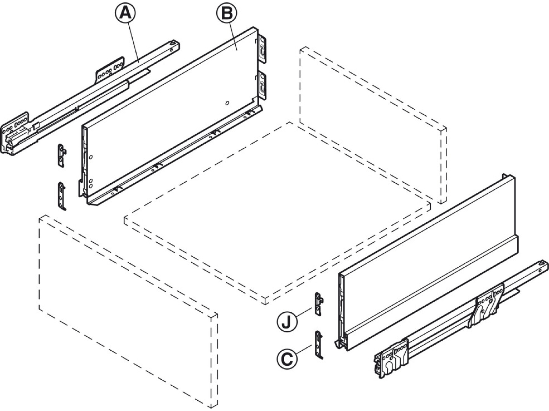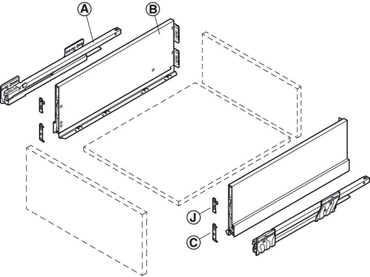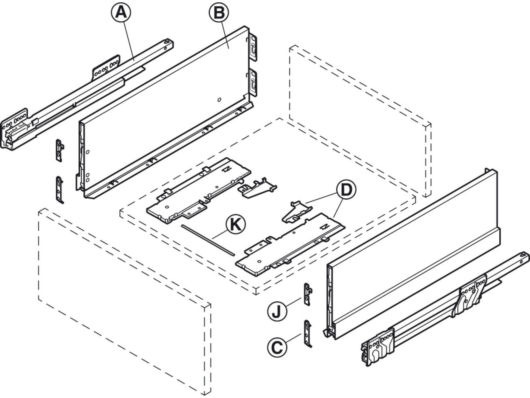 Drawer base, back, front and accessories are not included - must be ordered separately