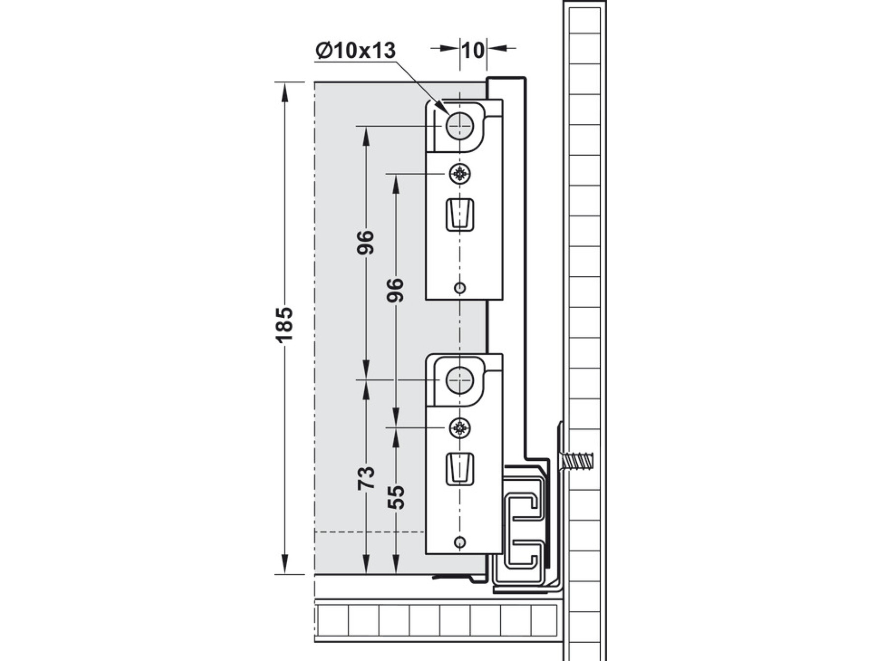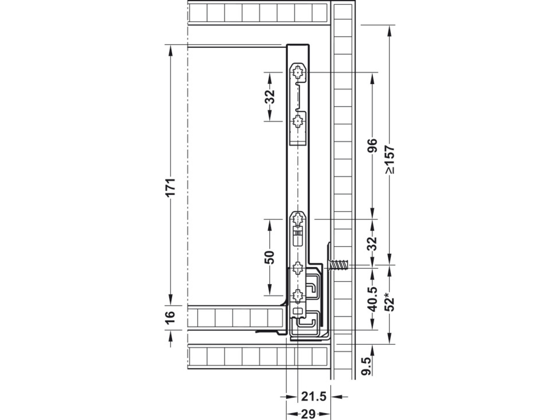 B 1 pair drawer siders, 186 mm height