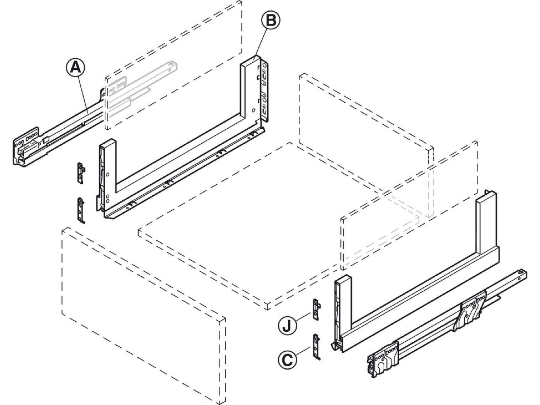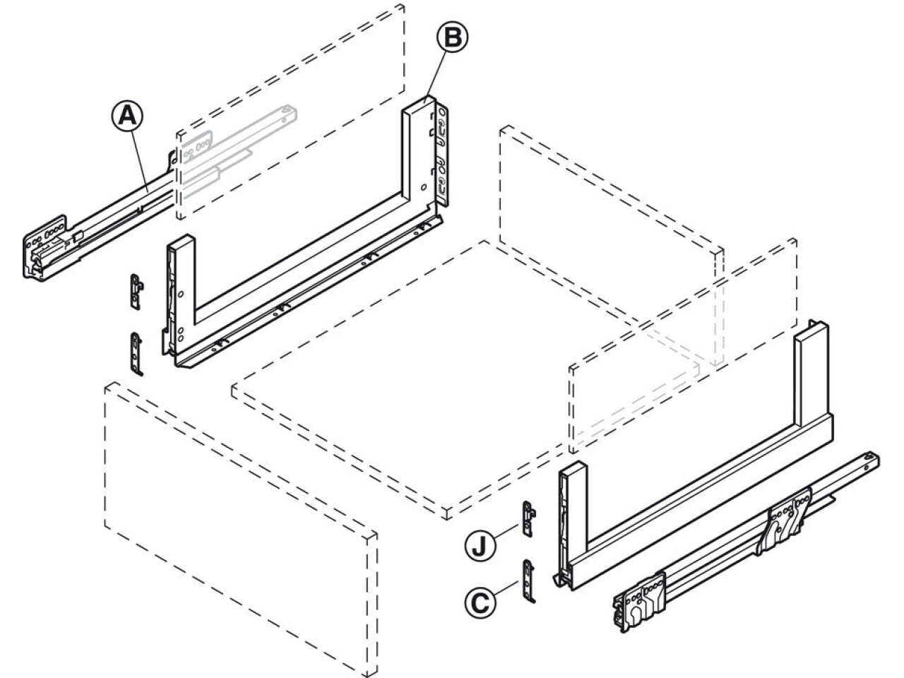 Drawer base, back, front, glass sides and accessories are not included - must be ordered separately