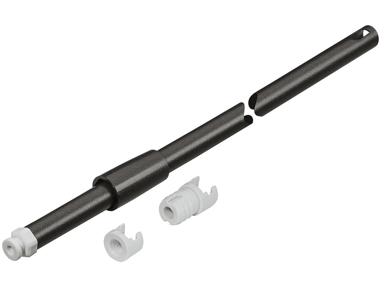 Set consists of 2 rails, 2 front brackets for press fitting, 2 front brackets for screw fixing and 2 rear panel holders