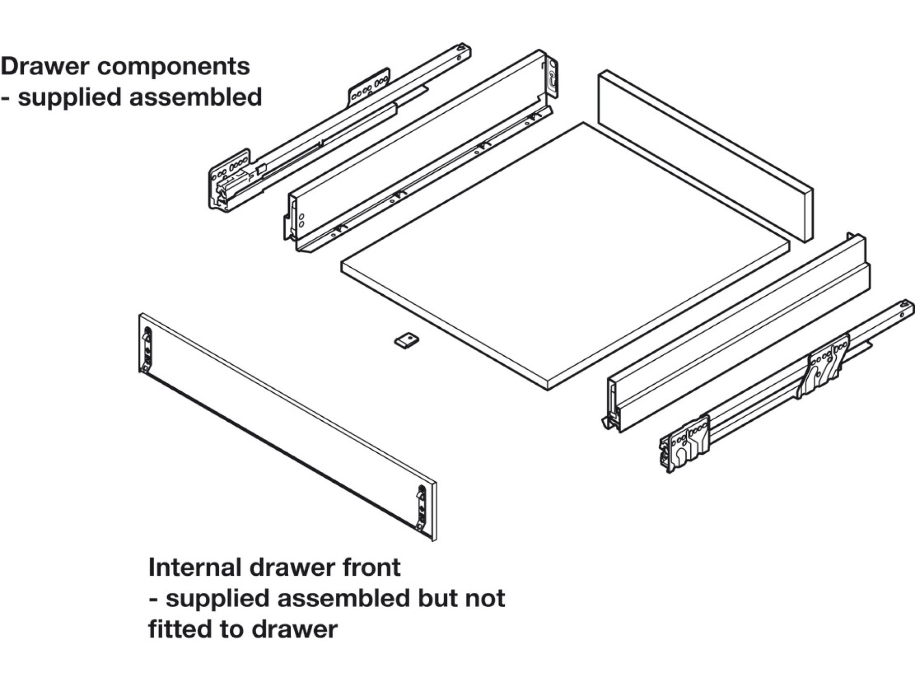 1x Assembled standard drawer with 90 mm high drawer sides with internal standard drawer front (assembled, not pre-fitted)