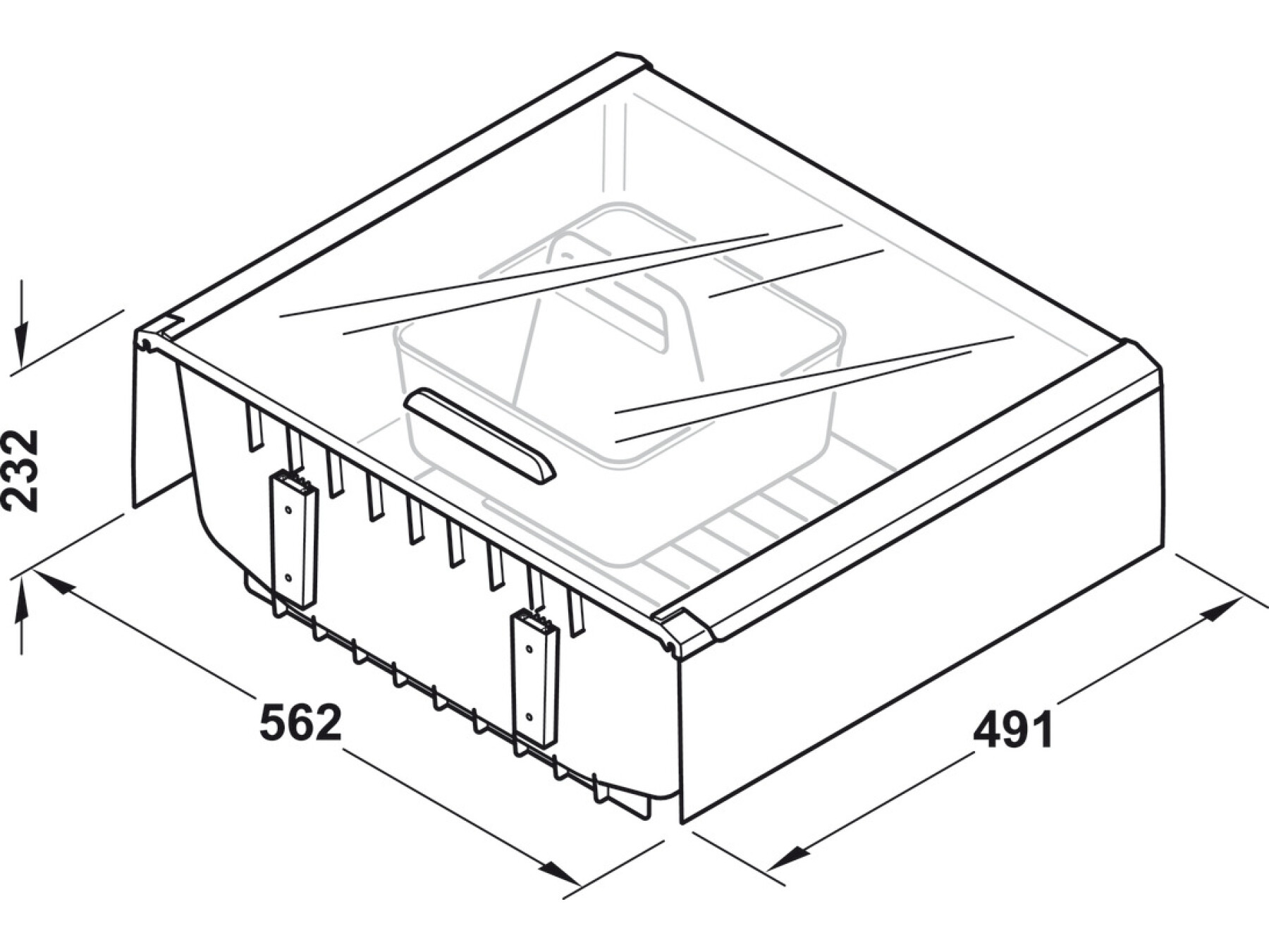 1x Small removable container with handle, 181 x 242 x 242 mm for e.g. onions, garlic, white plastic