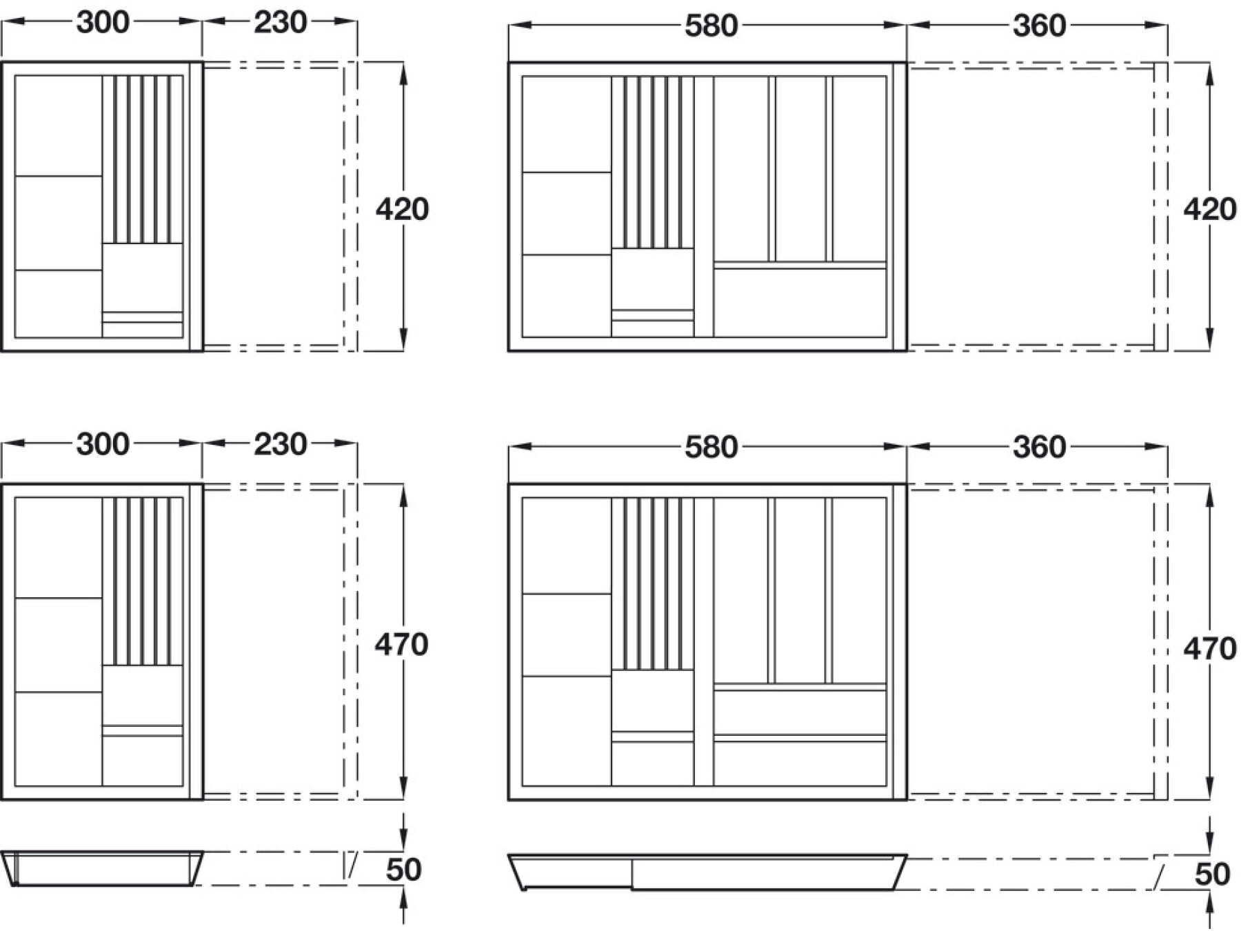 Suitable for 400*-600 mm or 800-1000 mm drawer widths (*450-600 mm if framed unit used)
