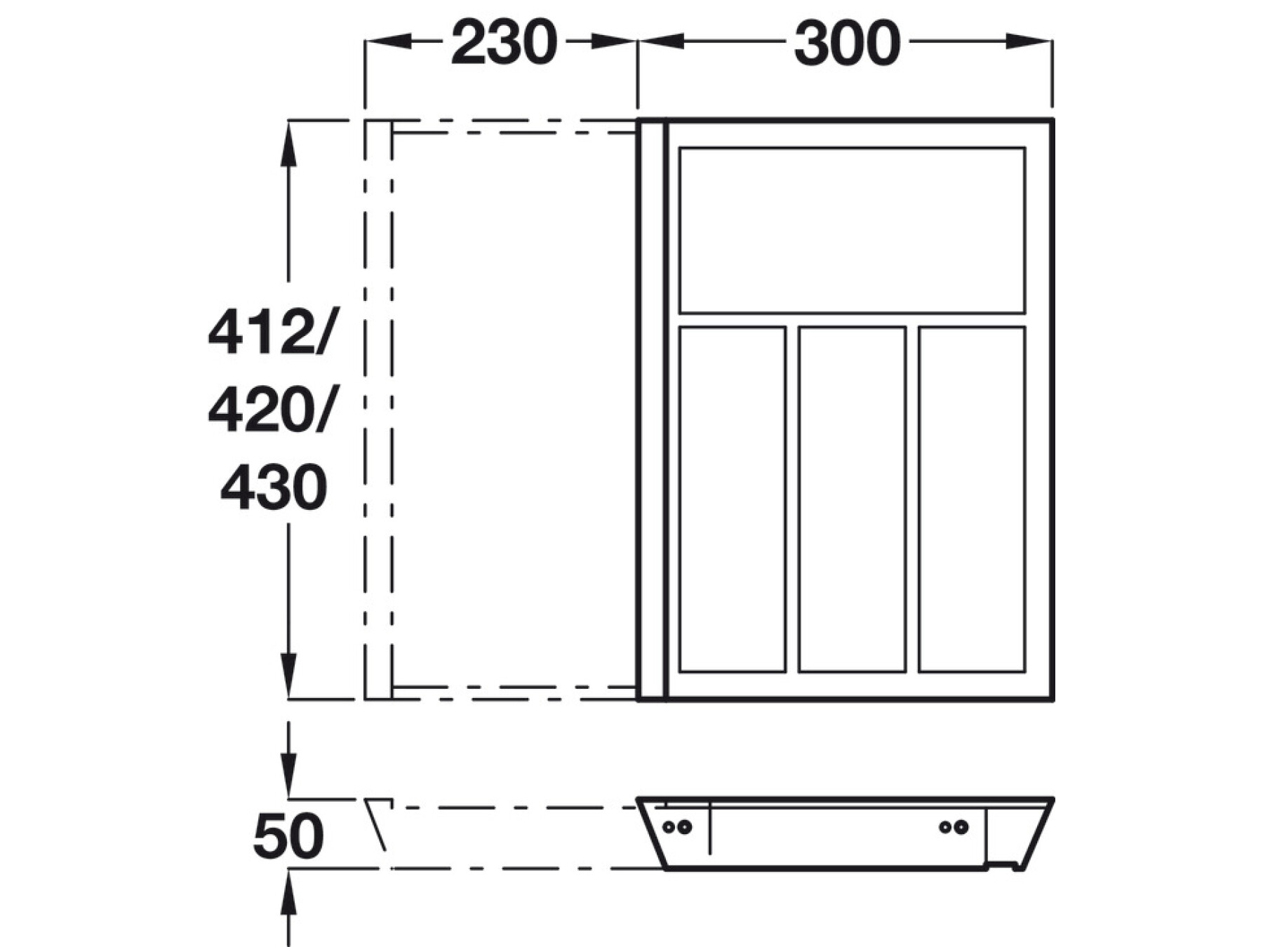 Suitable for 400*-600 mm, 600-1000 mm or 800-1000 mm drawer widths (*450-600 mm if framed unit used)
