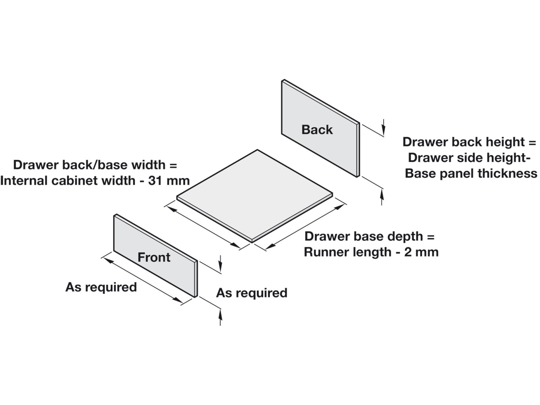 Order soft close mechanism 558.57.496 or 558.57.596 separately (2 required for drawers over 600 mm)