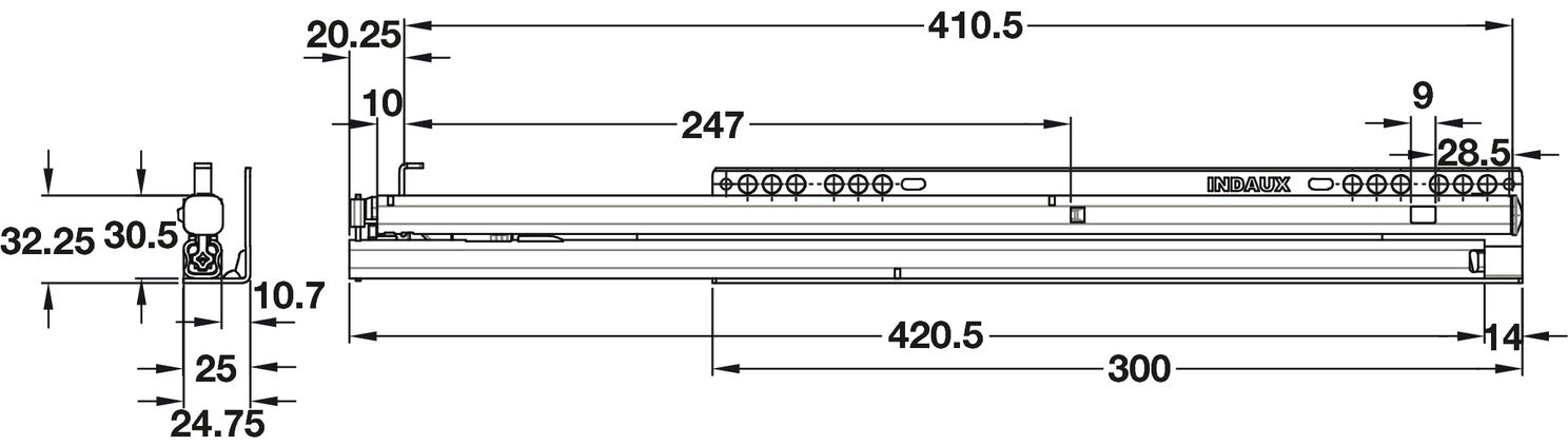 - Installation: The entire runner is concealed completely beneath the drawer base and is not revealed when fully extended