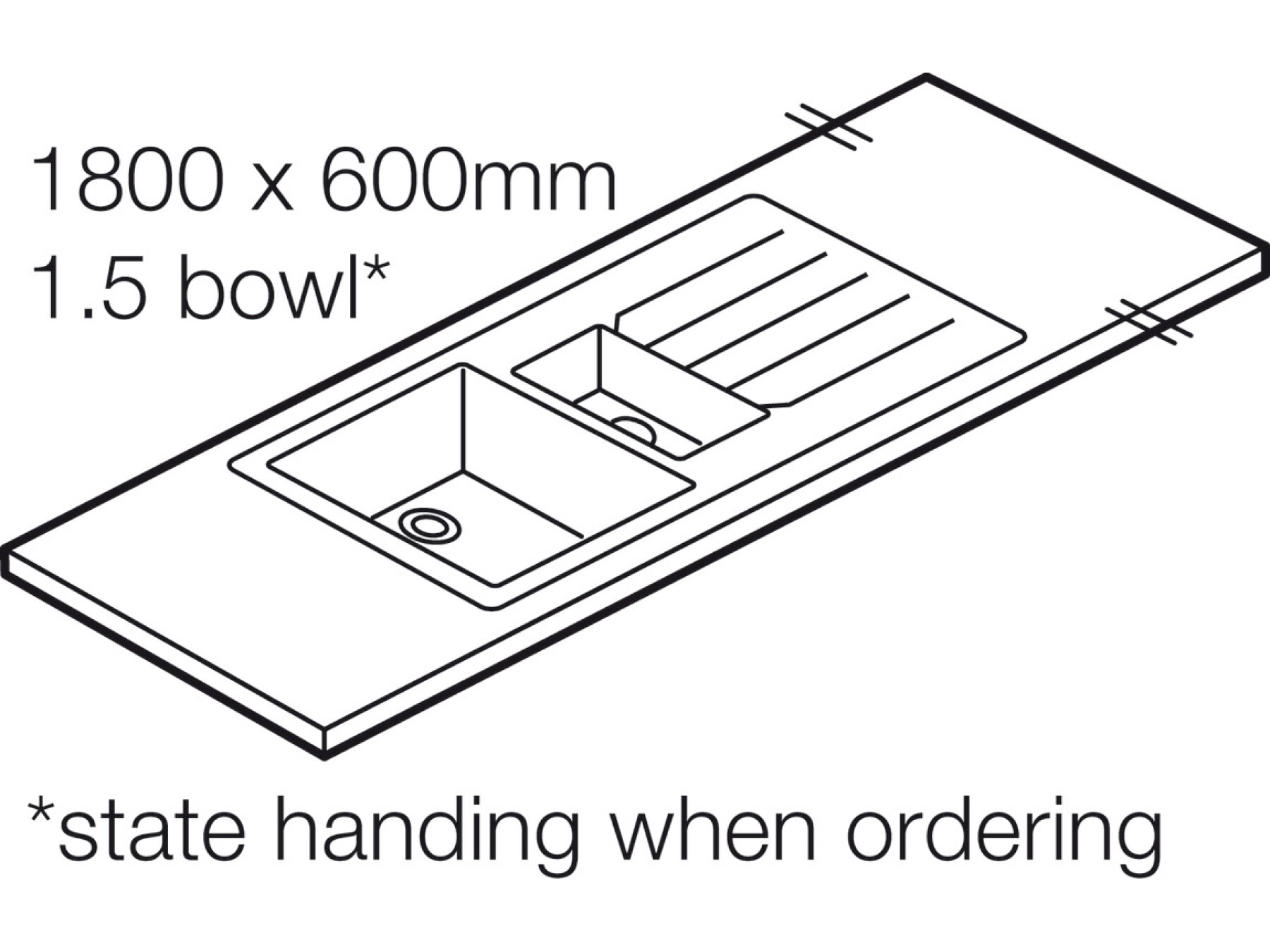 Please state handing when ordering worktops with integrated stainless steel 1.5 bowl sinks