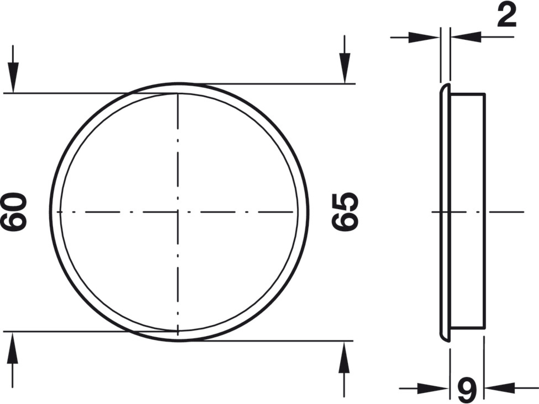 Technical data Diameter 65 mm Cut-out 60 mm Ventilation Area 13.49 cm² Thickness 2 mm