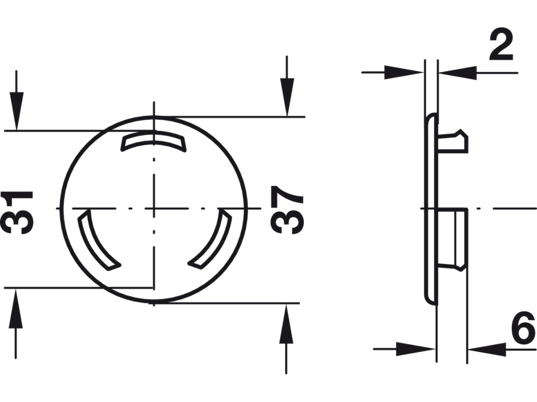 Ventilation Trim, Press Fittings with Three Mounting Lugs, Ø 37 mm, Plastic