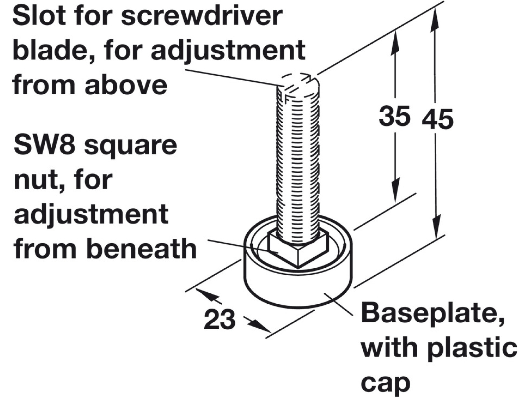 Plinth Adj Fit M8x45mm D23mm Galv St/Blk