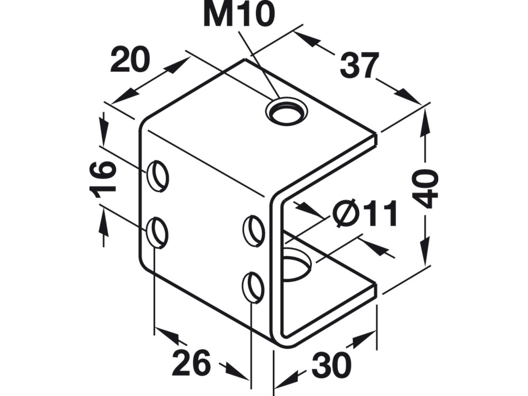 Featuring a U shape design, this screw-on bracket makes it easy to secure components with confidence. The key connection is the threaded hole: M10, giving you a strong, secure fit for compatible fixings and assemblies. With an internal thread M10, you can achieve a firm, controlled hold—perfect for applications where stability matters.