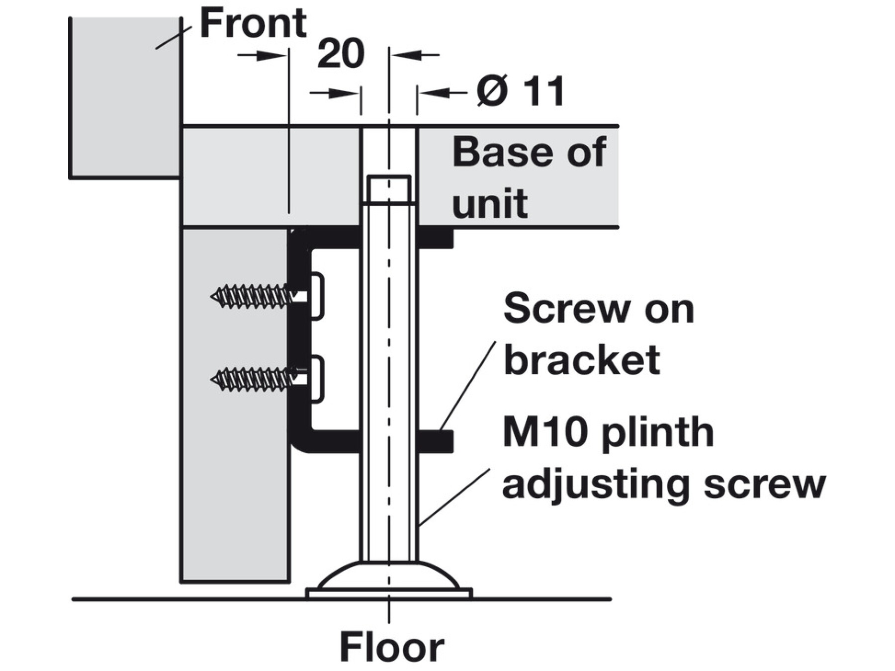 Screw On Bracket, for M10 Plinth Adjusting Screw, Double Angle