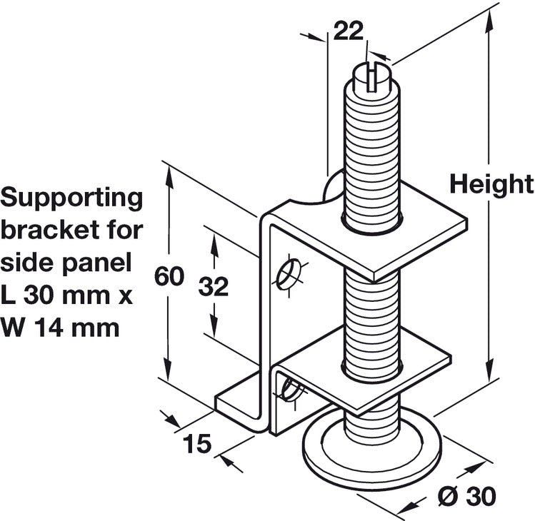 Plinth Adj w Supp Brkt M10x80mm Galv St
