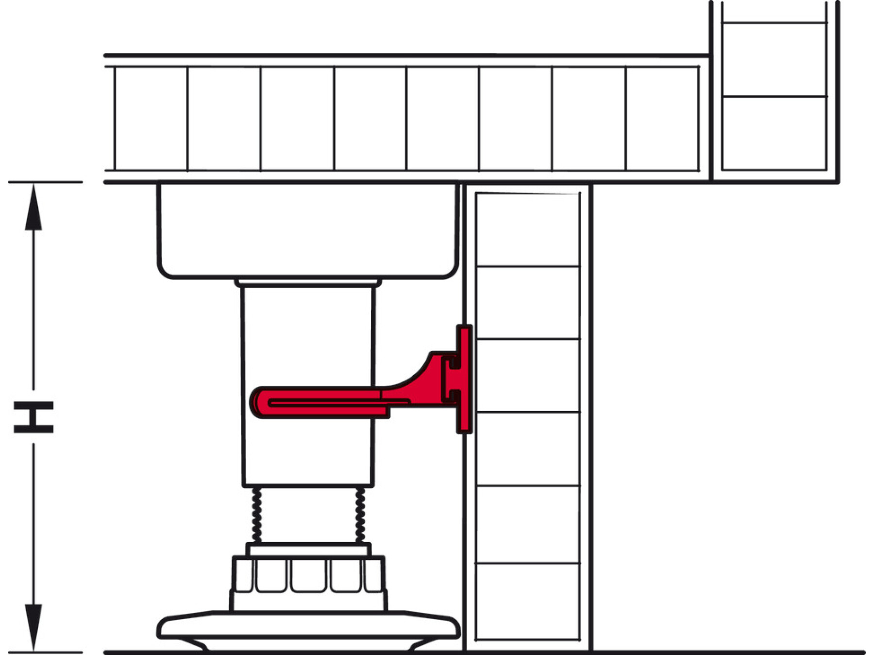 for fixing the plinth panel, usable from installation height H = 80 mm