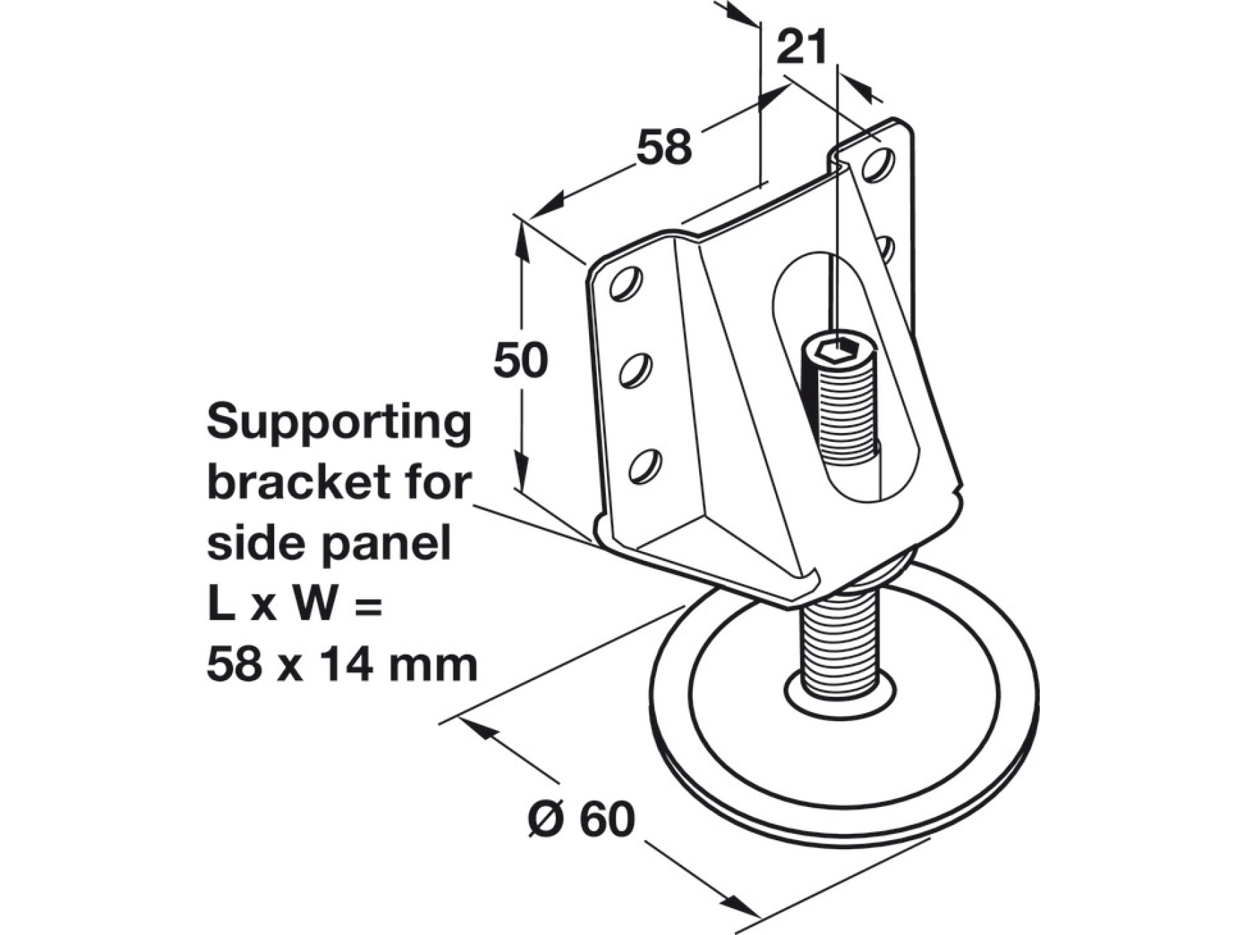 M12 x 65 mm threaded spindle with SW5 socket head and Ø 60 mm swivelling base plate