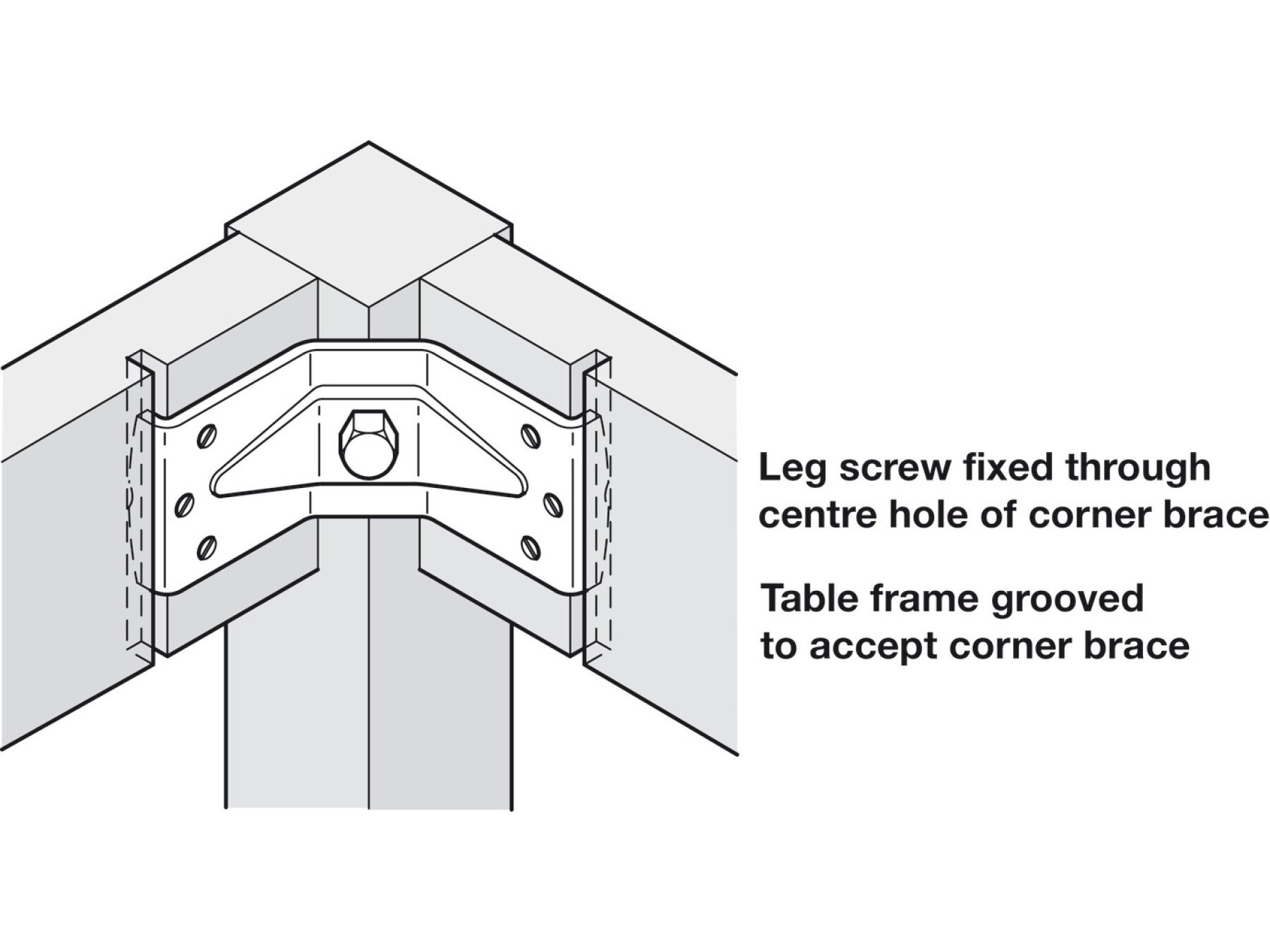 For attaching table legs to table frame
