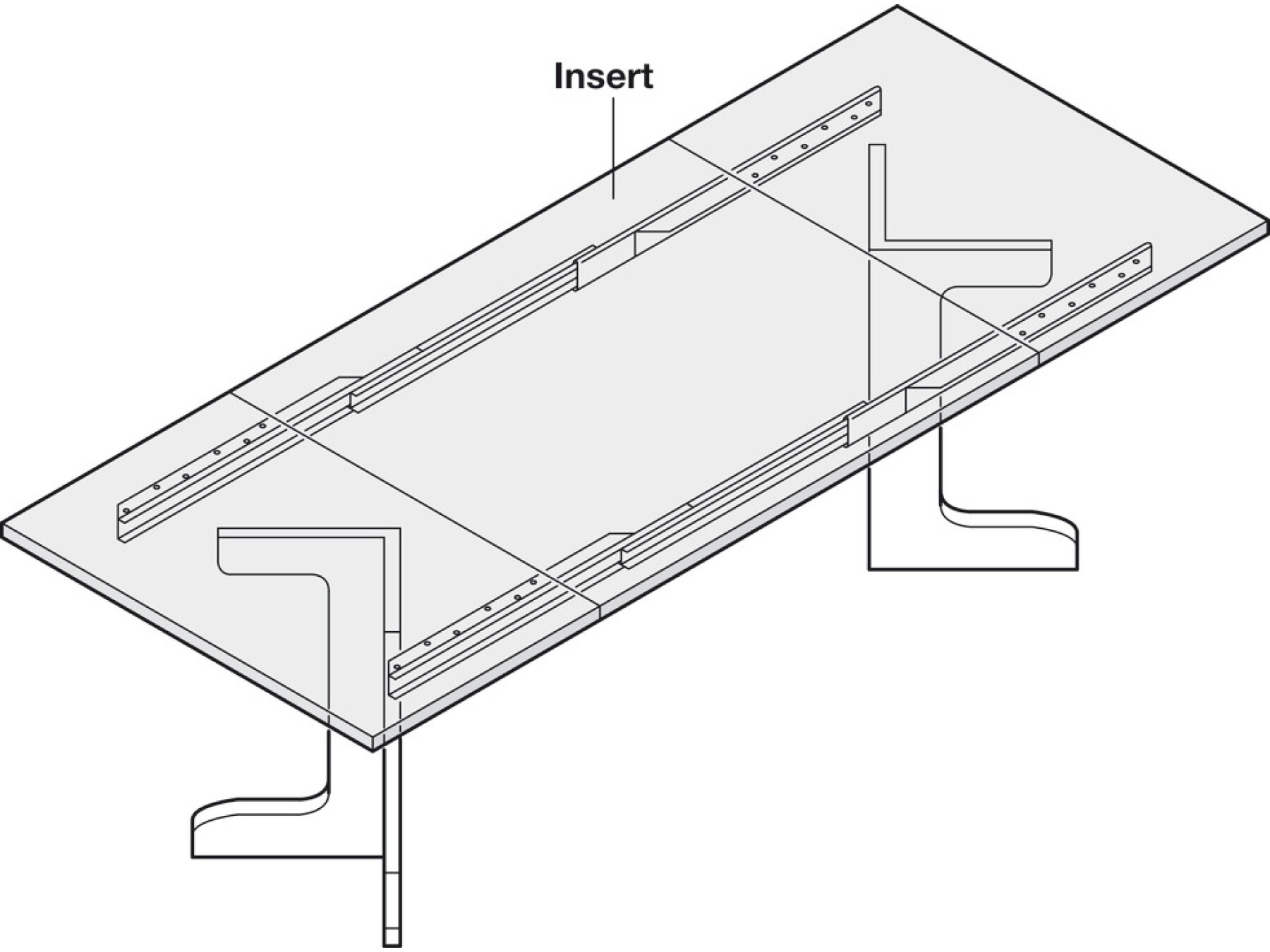 Installation length of pull out table fitting = approx. length of frame/base or approx. 2/3 of table diameter or table length without extension leaves