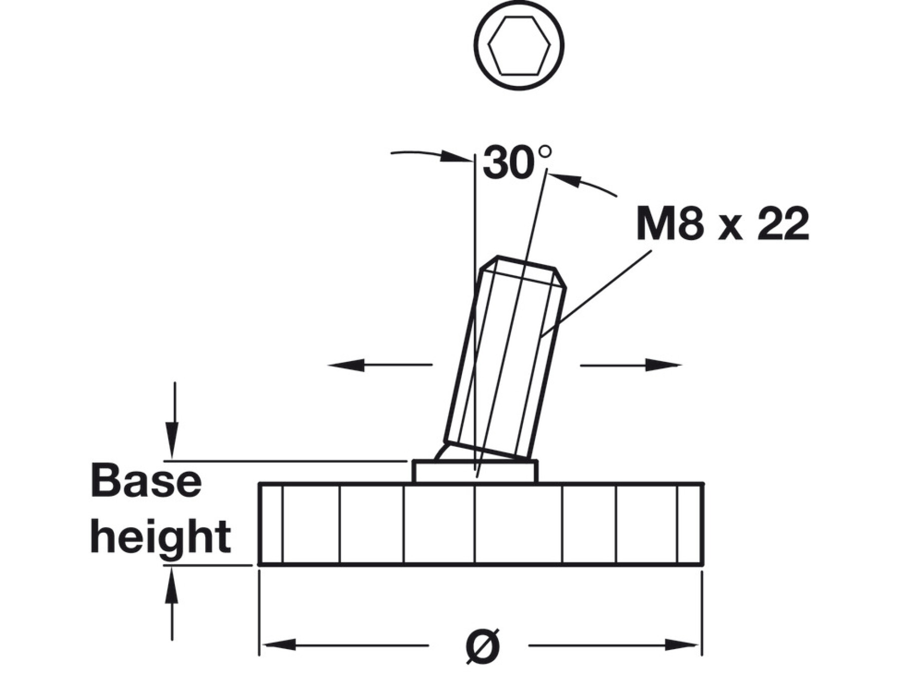 With M8 x 22 mm threaded bolt