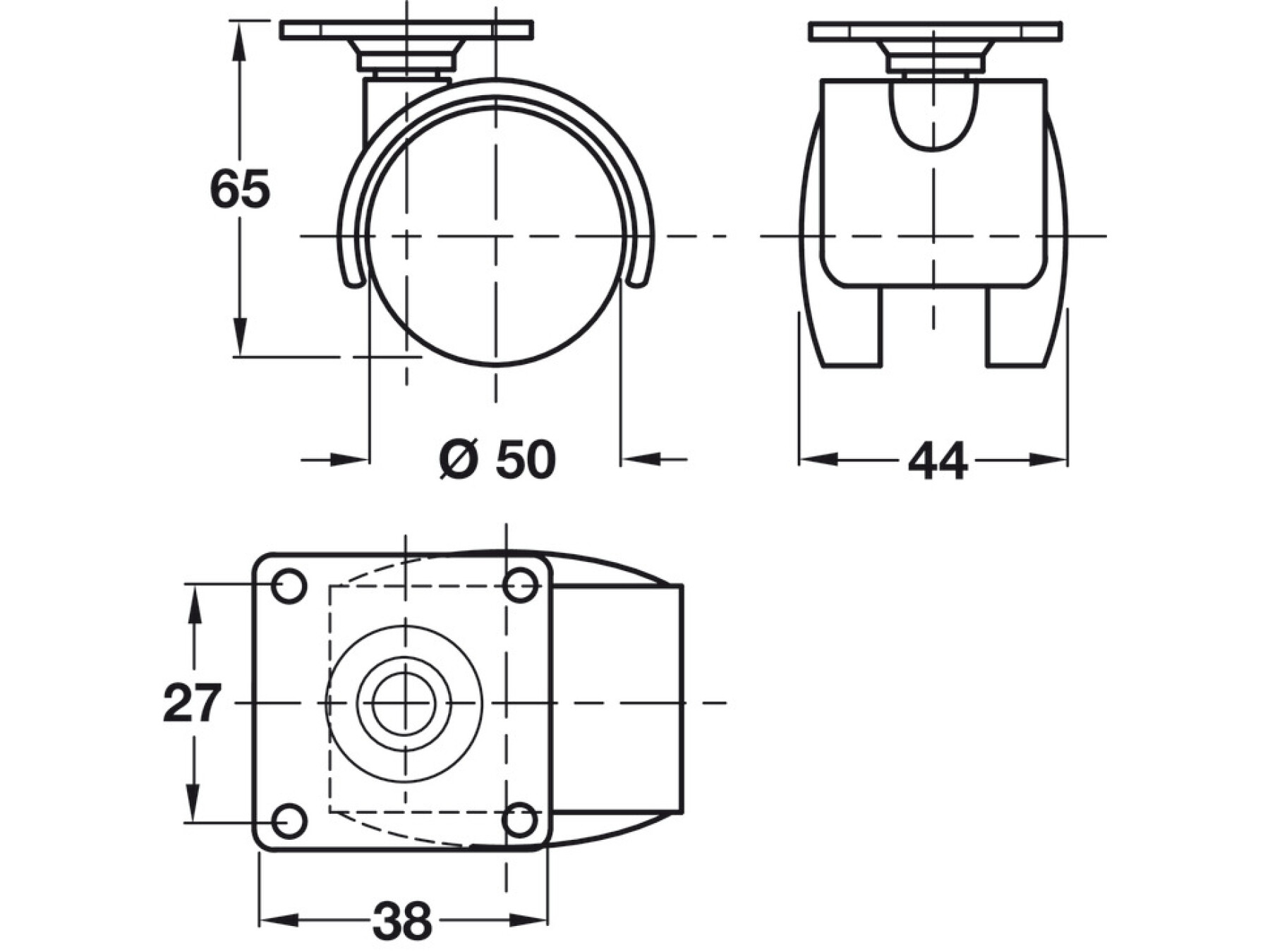 Screw fixing, 38 x 38 mm mounting plate