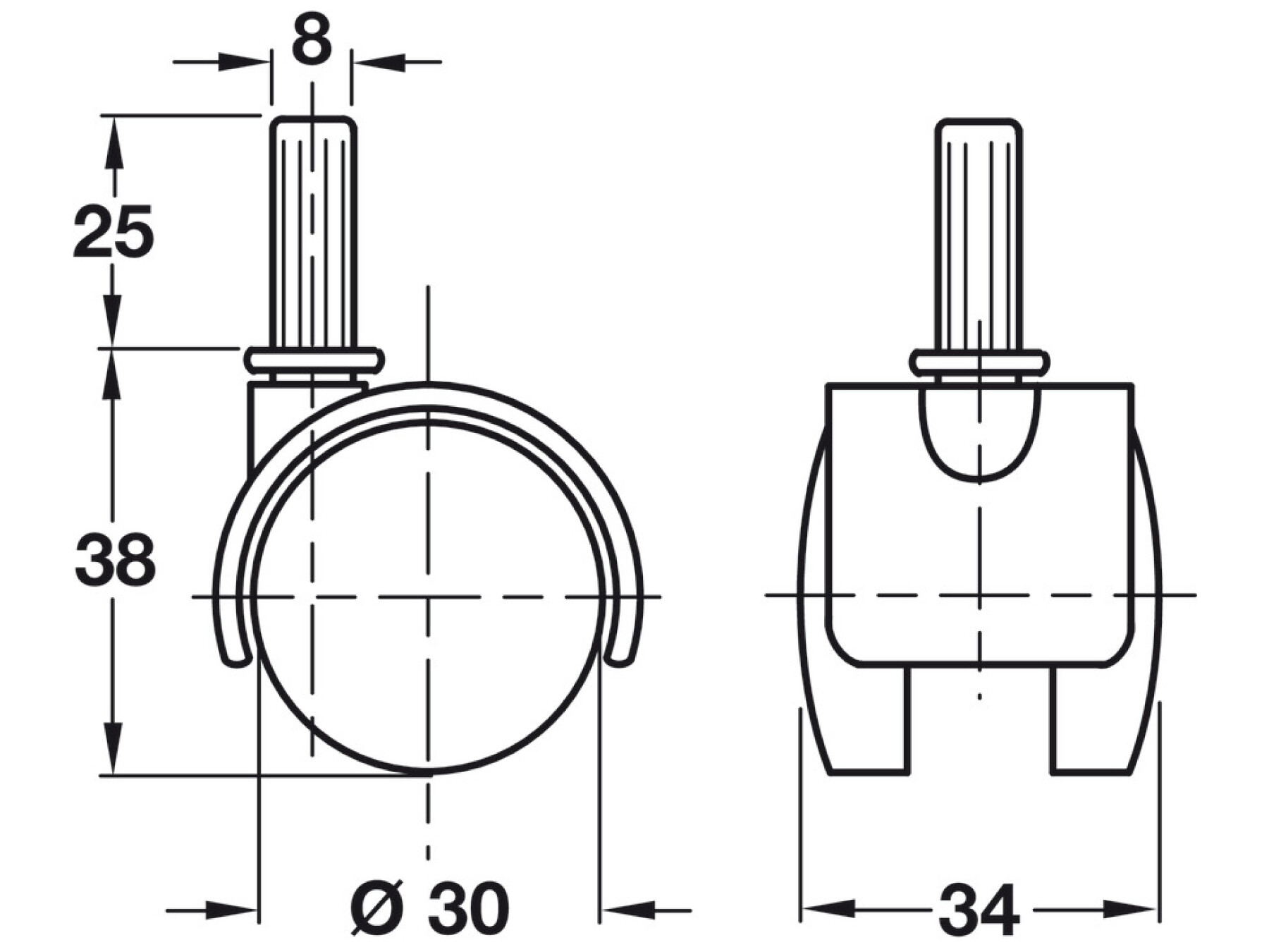 Wheel Ø 30 mm, load capacity 25 kg