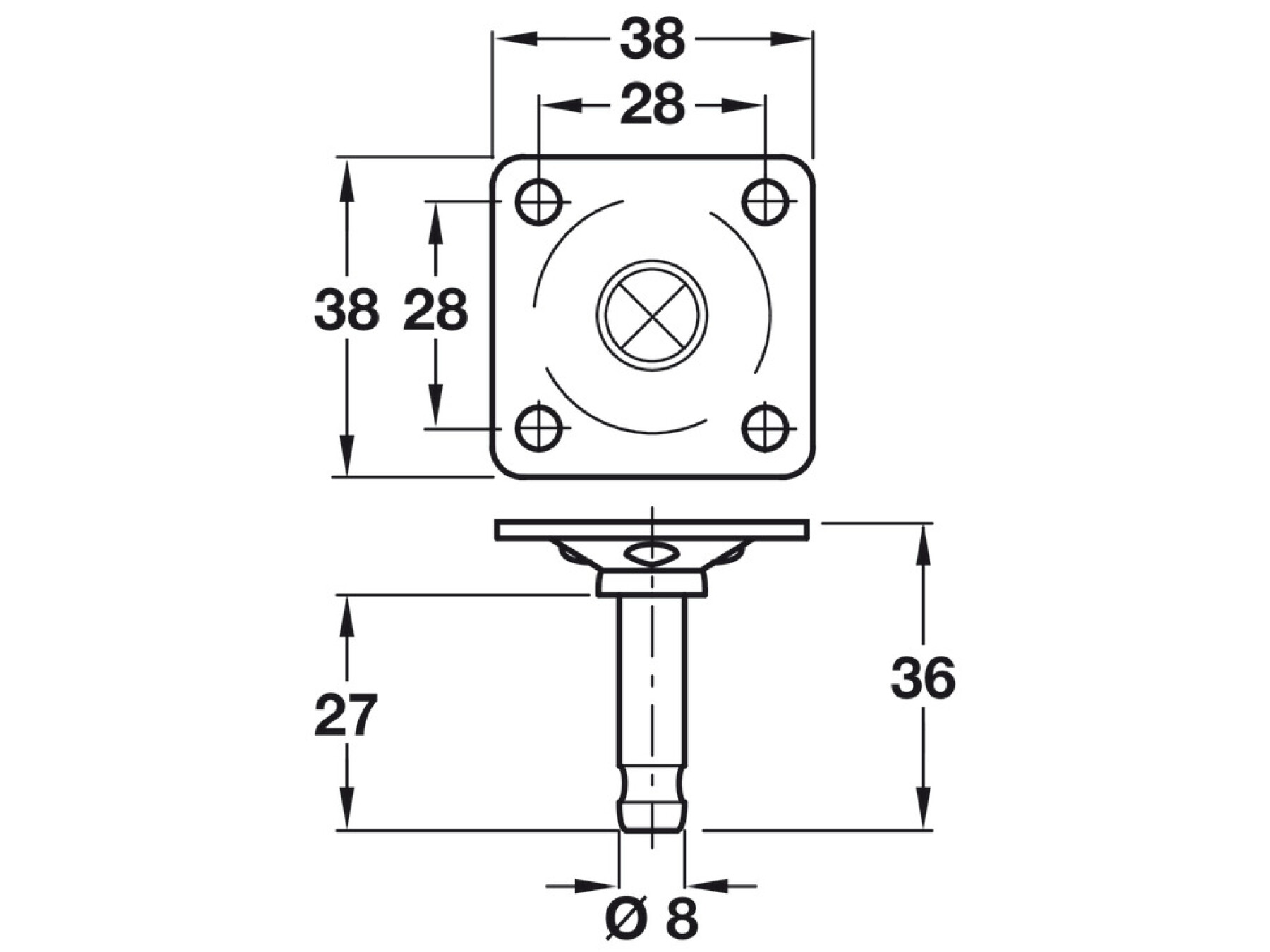 Pin/Mount Plate D8x38x38mm Galv St