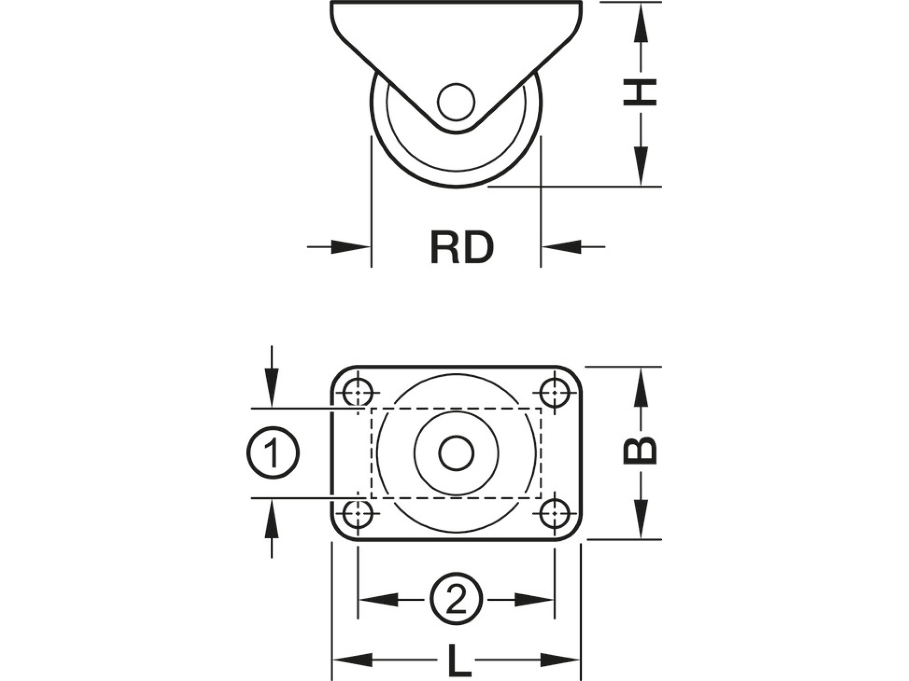 Screw-on plate, Wheel Ø 40 mm, load capacity 35 kg, swivel castor