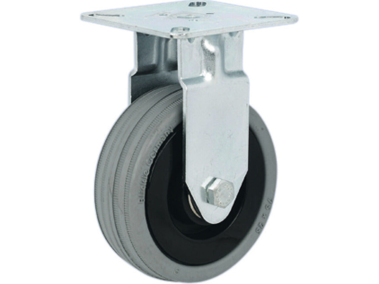 Built for durability, the housing is steel finished in zinc plated / galvanized for corrosion resistance. The wheel uses plastic (polyamide) with a solid rubber running surface, balancing comfort, grip, and impact resistance.