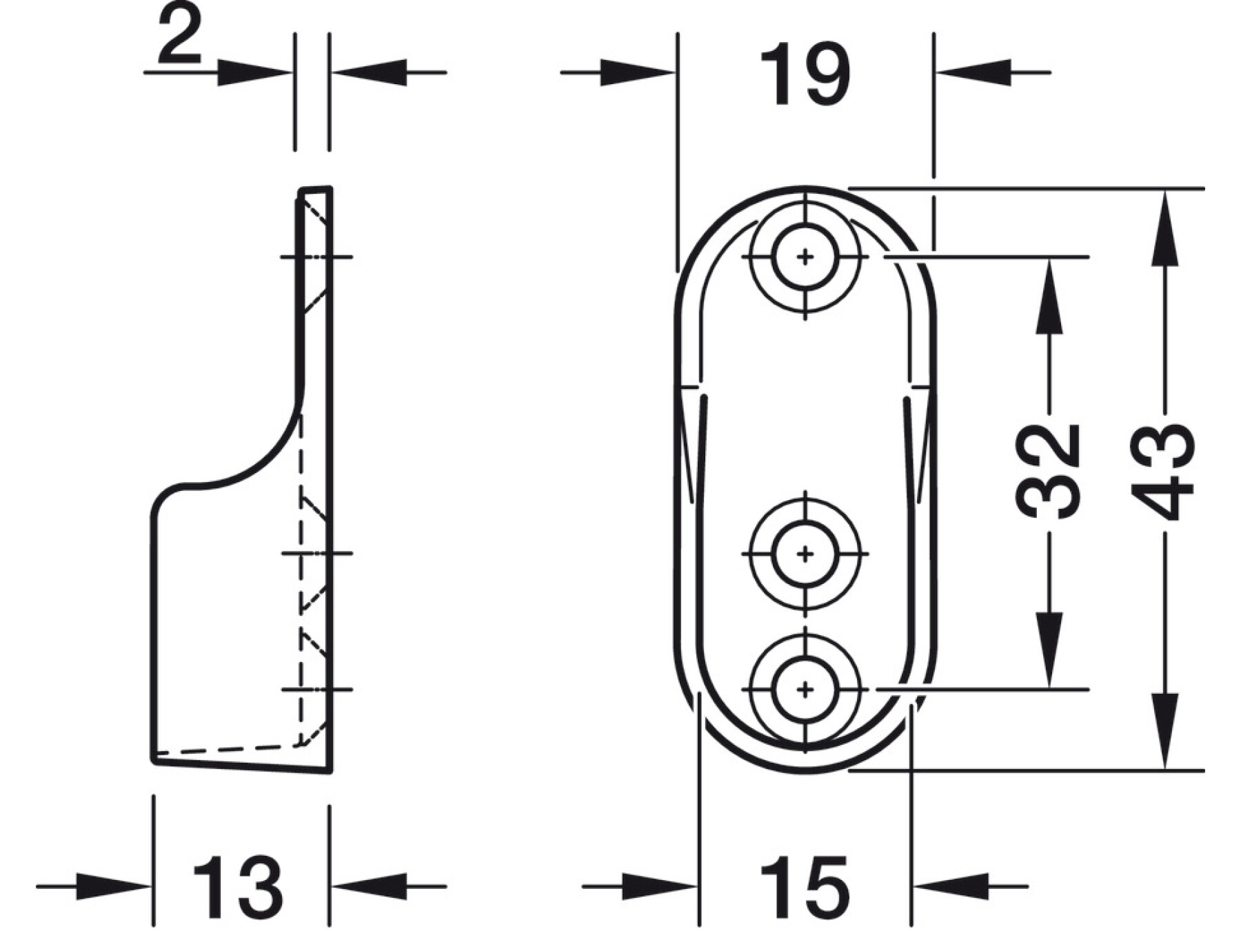 Dimensions: 13 x 43 x 19 mm. Built specifically for oval 30 x 15 mm wardrobe rails, it supports a secure screw-fixed connection at the rail end—perfect for replacing worn fittings or completing a new installation.