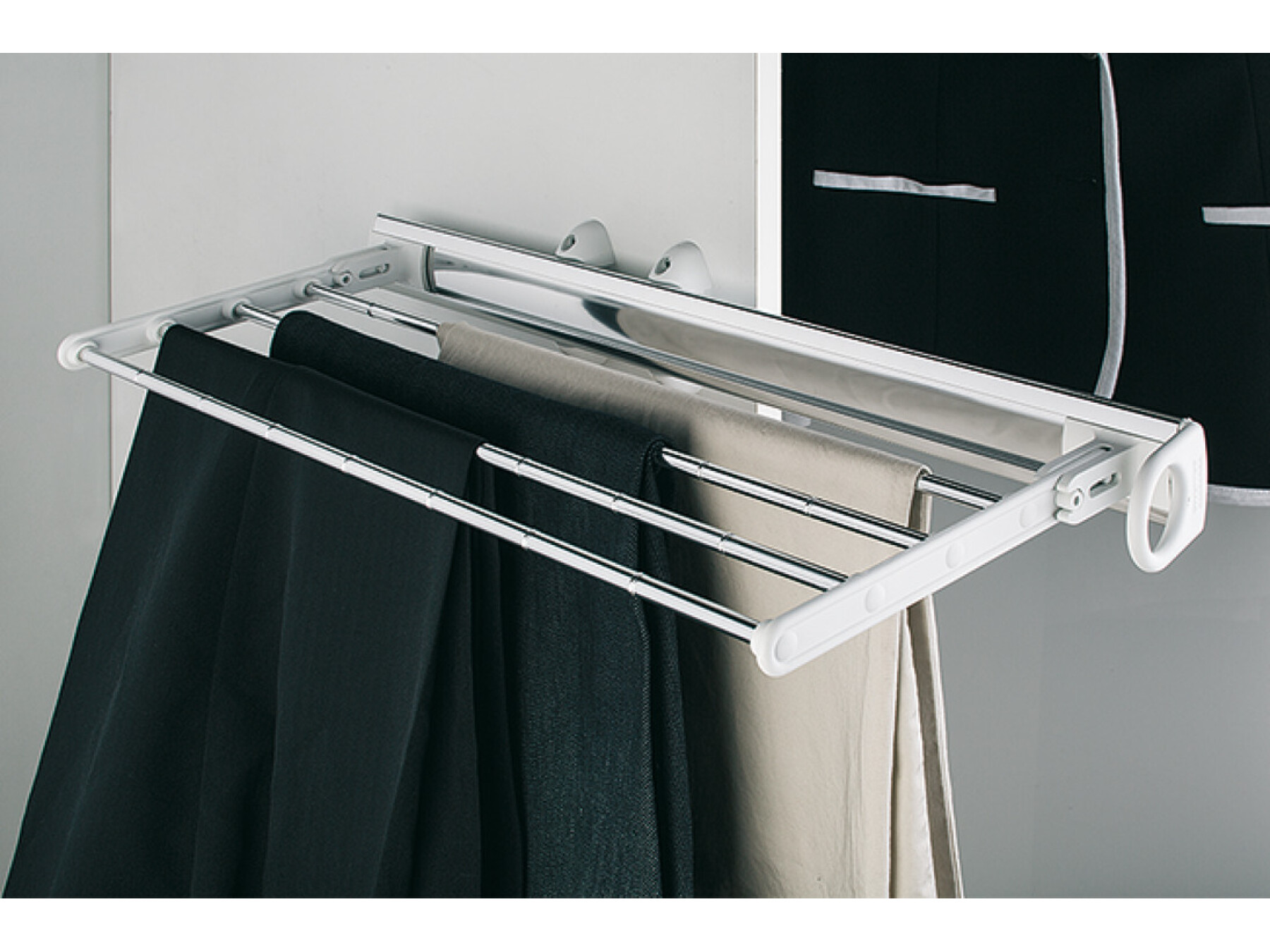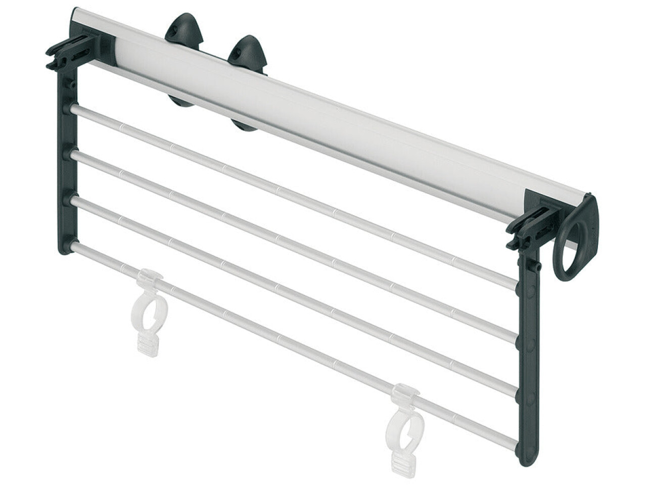 Rack and clips included for either 32 ties, 4 trousers or 4 skirts and fixings