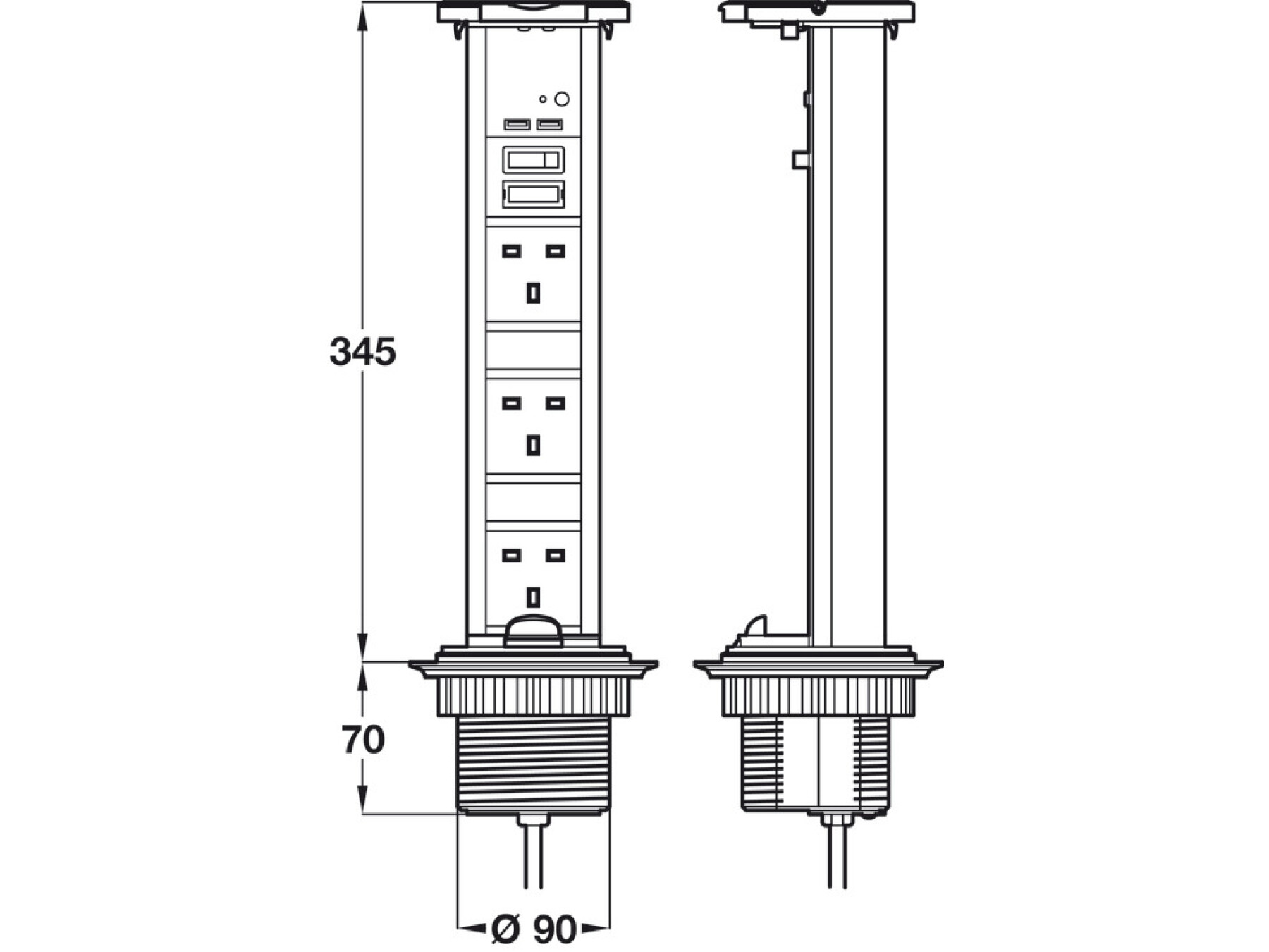 3 x UK 13 amp sockets and 2 x 700 mA USB connectors