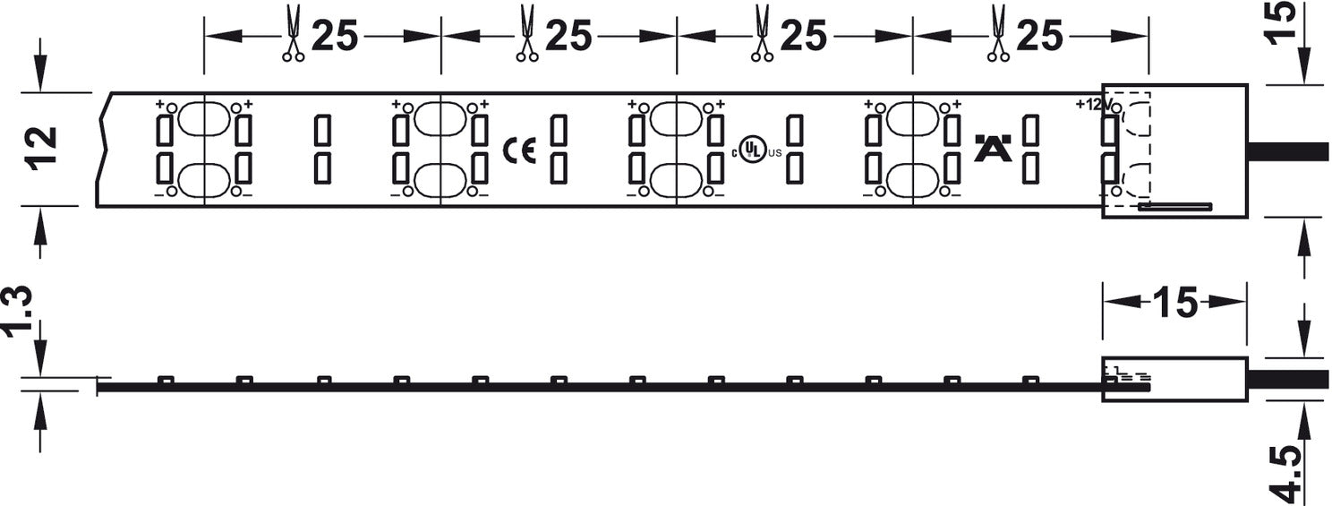 Can be shortened every 25 mmIdeal for retrofittingInstallation only with aluminum profileDimmableSelf adhesiveInstallation only with aluminium profile with profile height from 12 mm and aboveAll aluminium profiles are suitable except 833.72.843, 833.74.813, 833.74.814The maximum wattage that can be connected to a light output on a driver is: 24V x 3.5A = 84WMax. strip light length 3.8 m per connecting lead