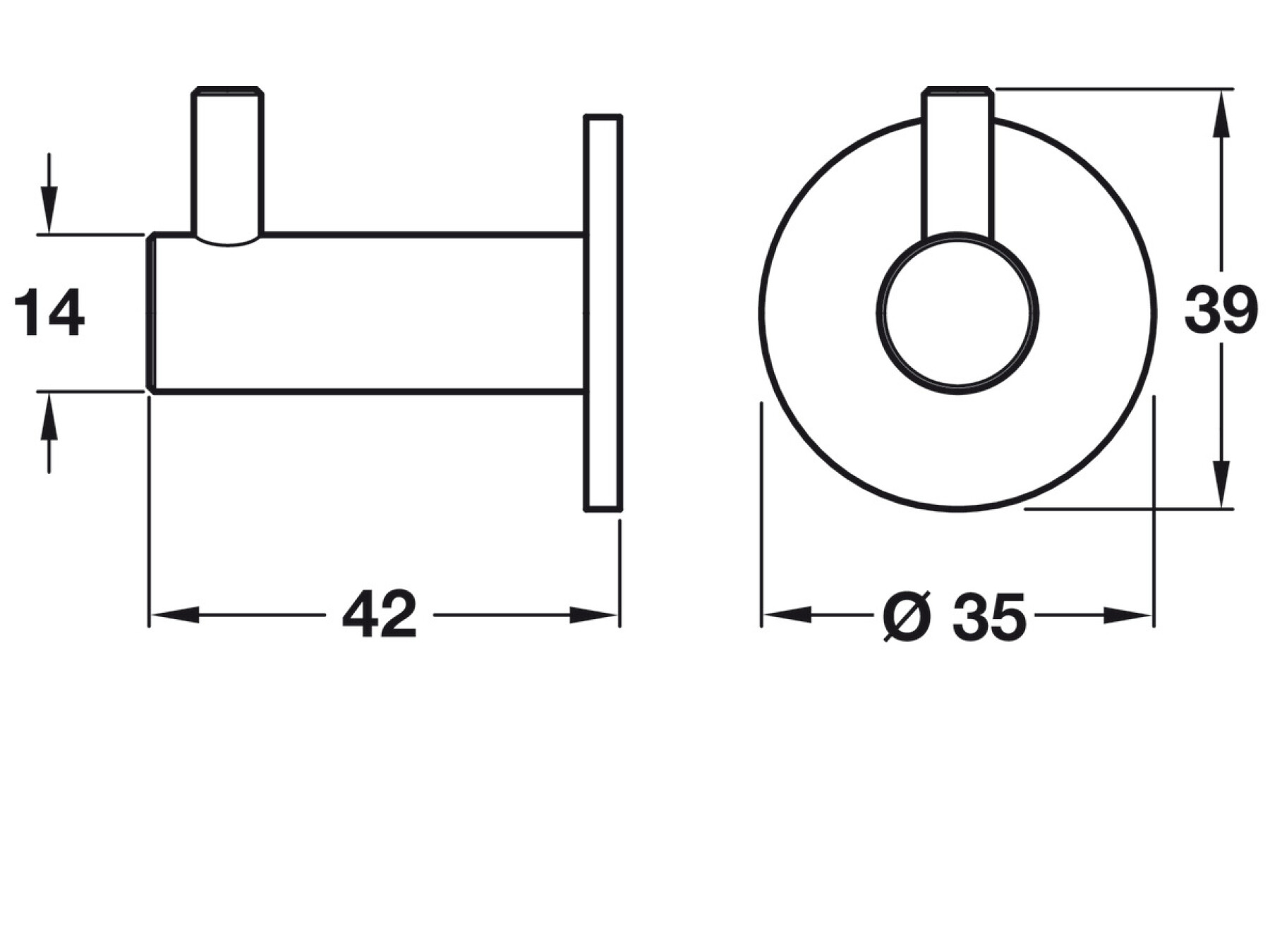 With a compact, space-saving profile, this hook is sized for practical mounting: the rose measures 35.00 mm in diameter, while the hook diameter is 14.00 mm. Its overall dimensions include a depth of 42.00 mm and a height of 39.00 mm, allowing you to maximise hanging capacity without crowding your wall or wardrobe interior.